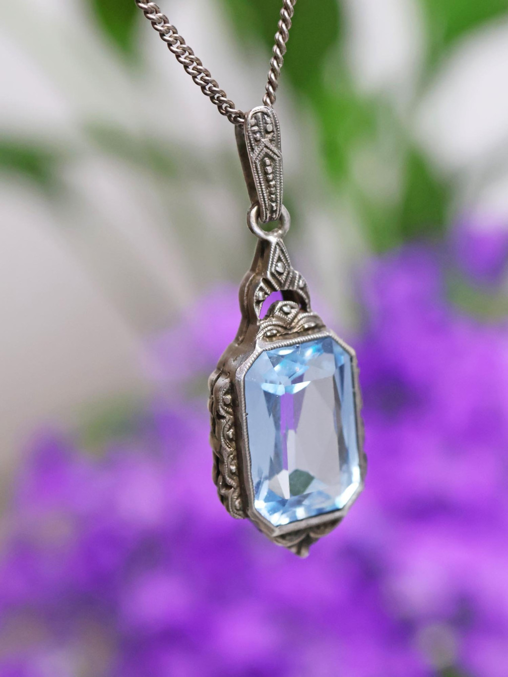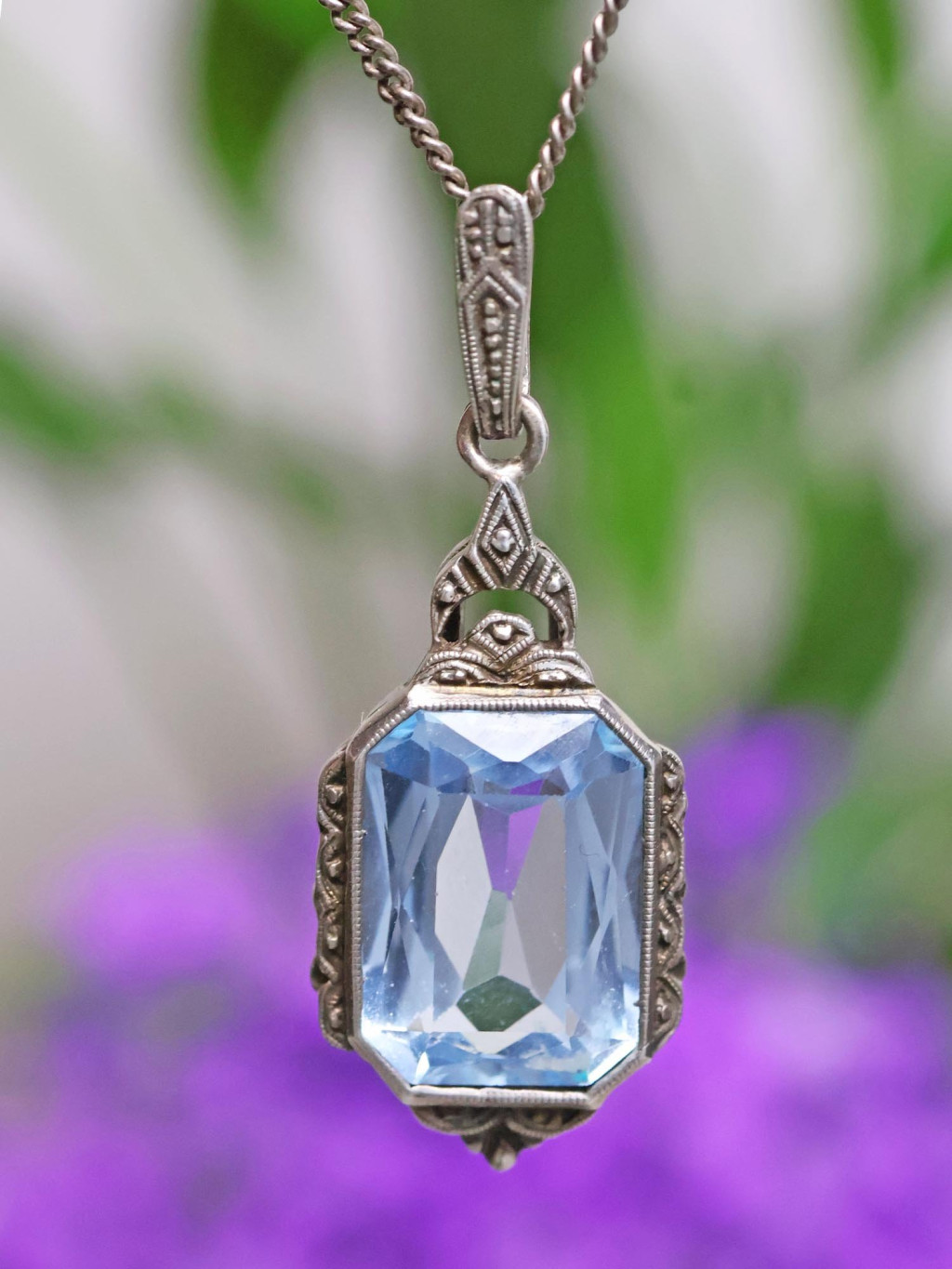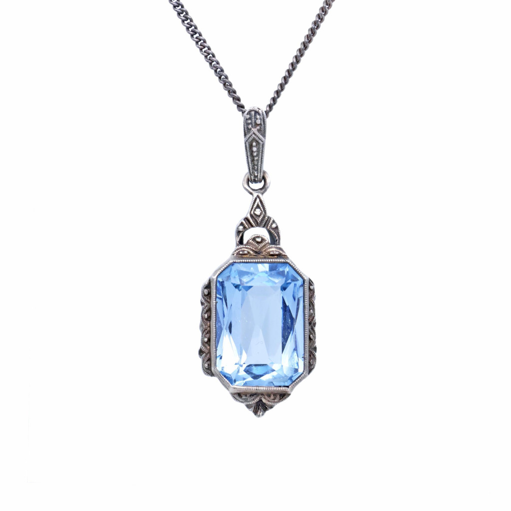 Art deco stříbrný přívěsek s topazem a řetízkem