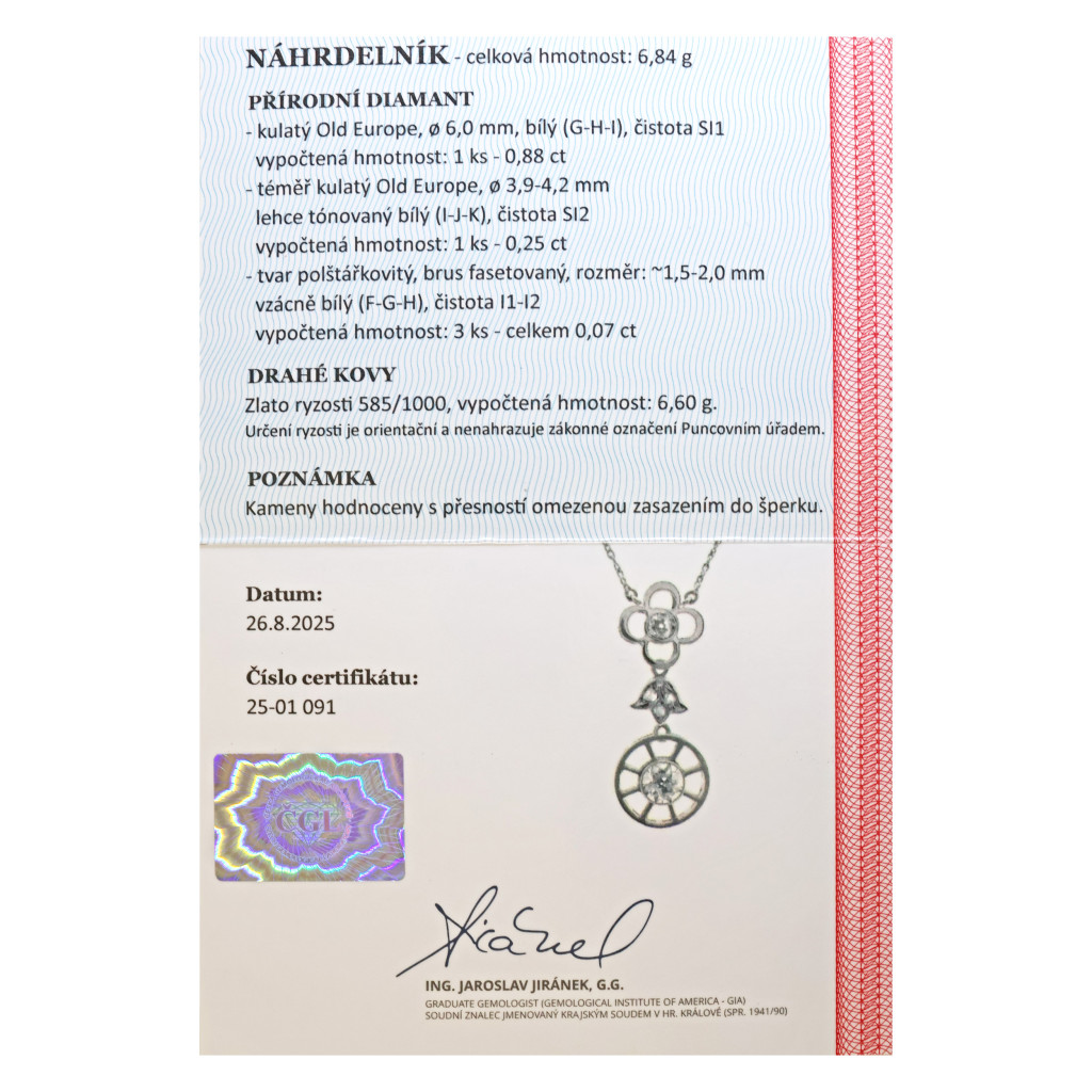 Přiložen CERTIFIKÁT PRAVOSTI ČGL