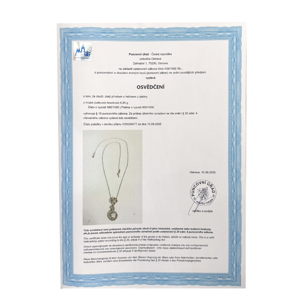 14 karátové zlato 585/1000, Platina 900/1000, celková hmotnost 6,84g