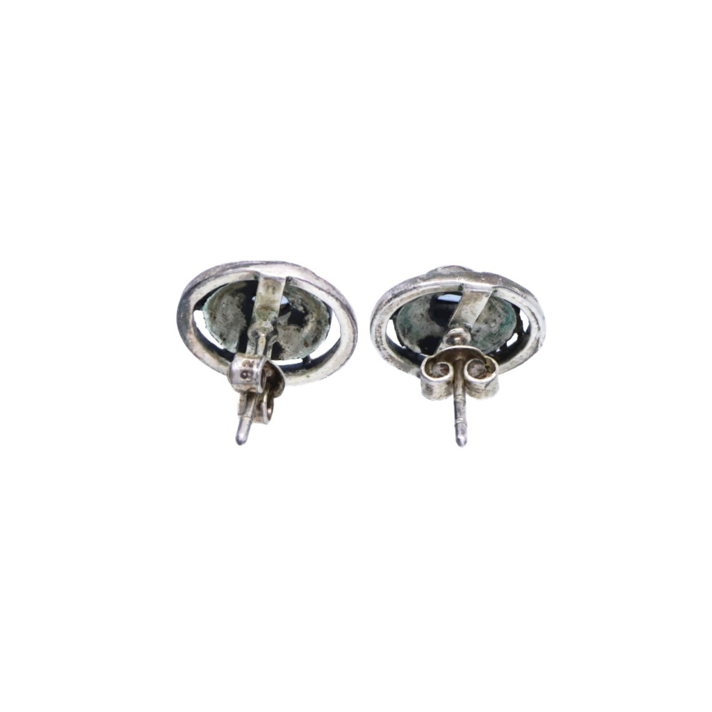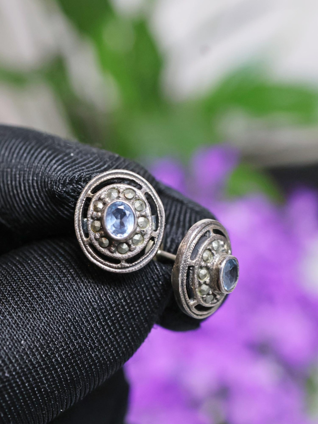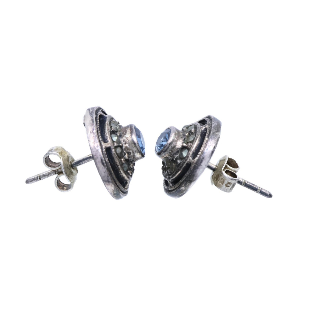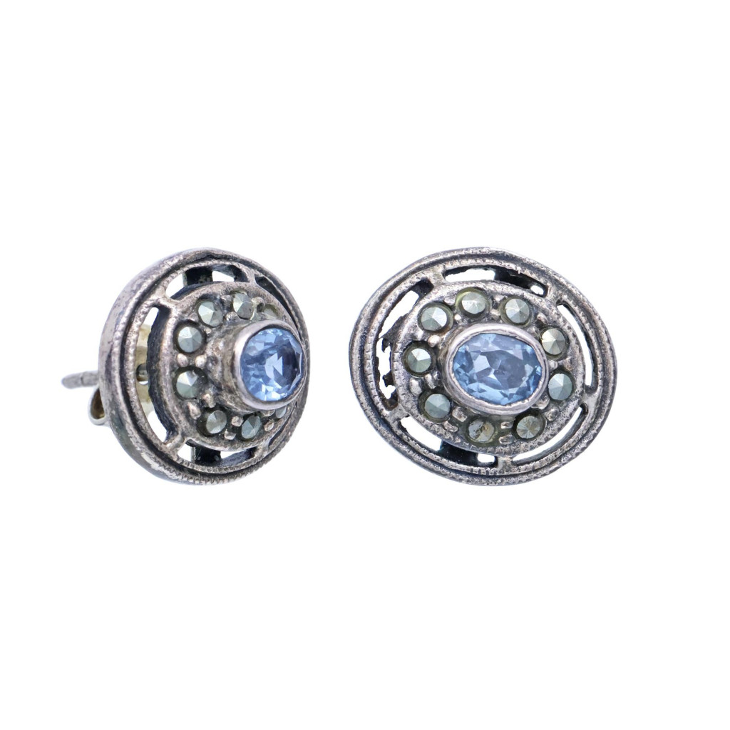 Stříbrné náušnice s modrým kamenem a markazity
