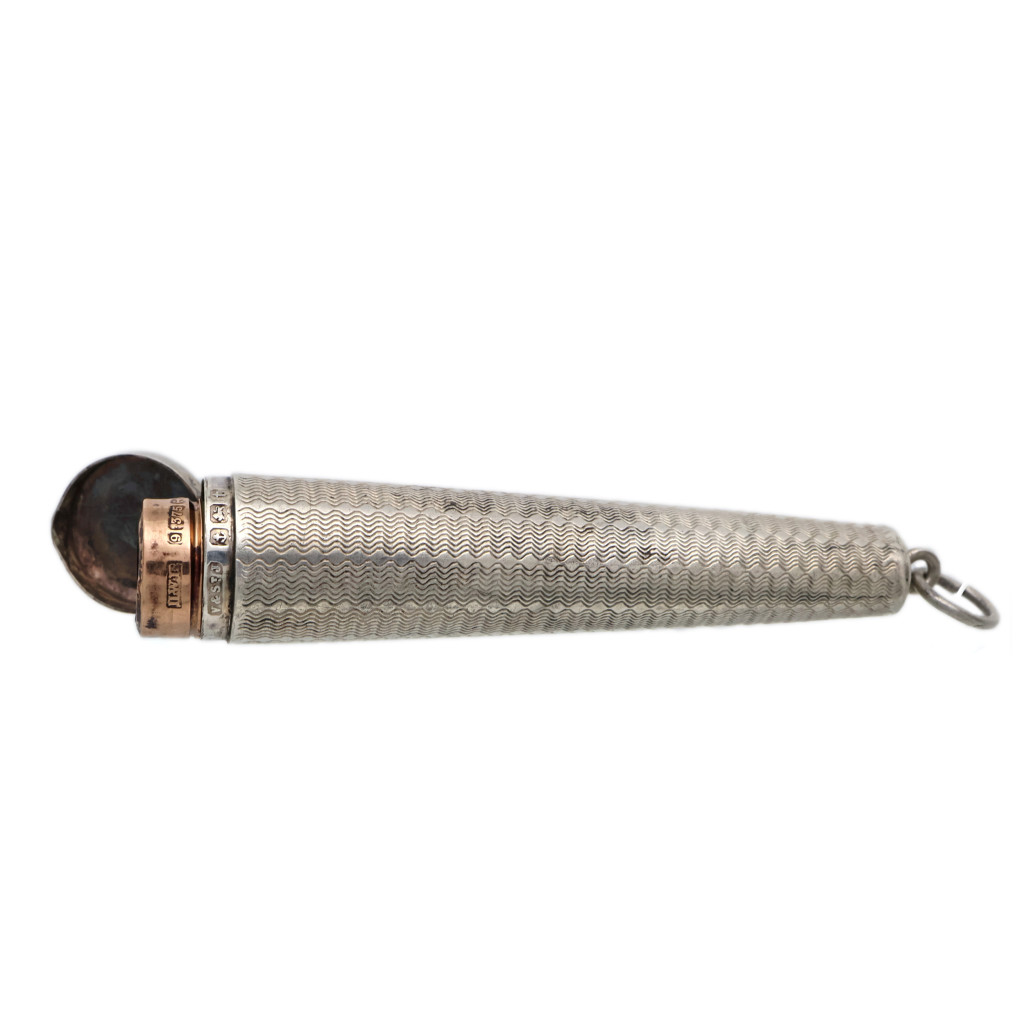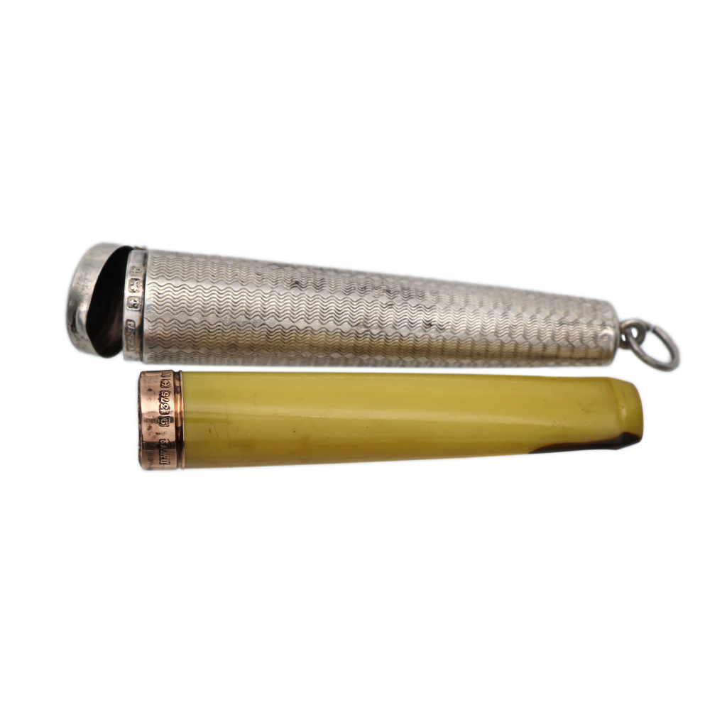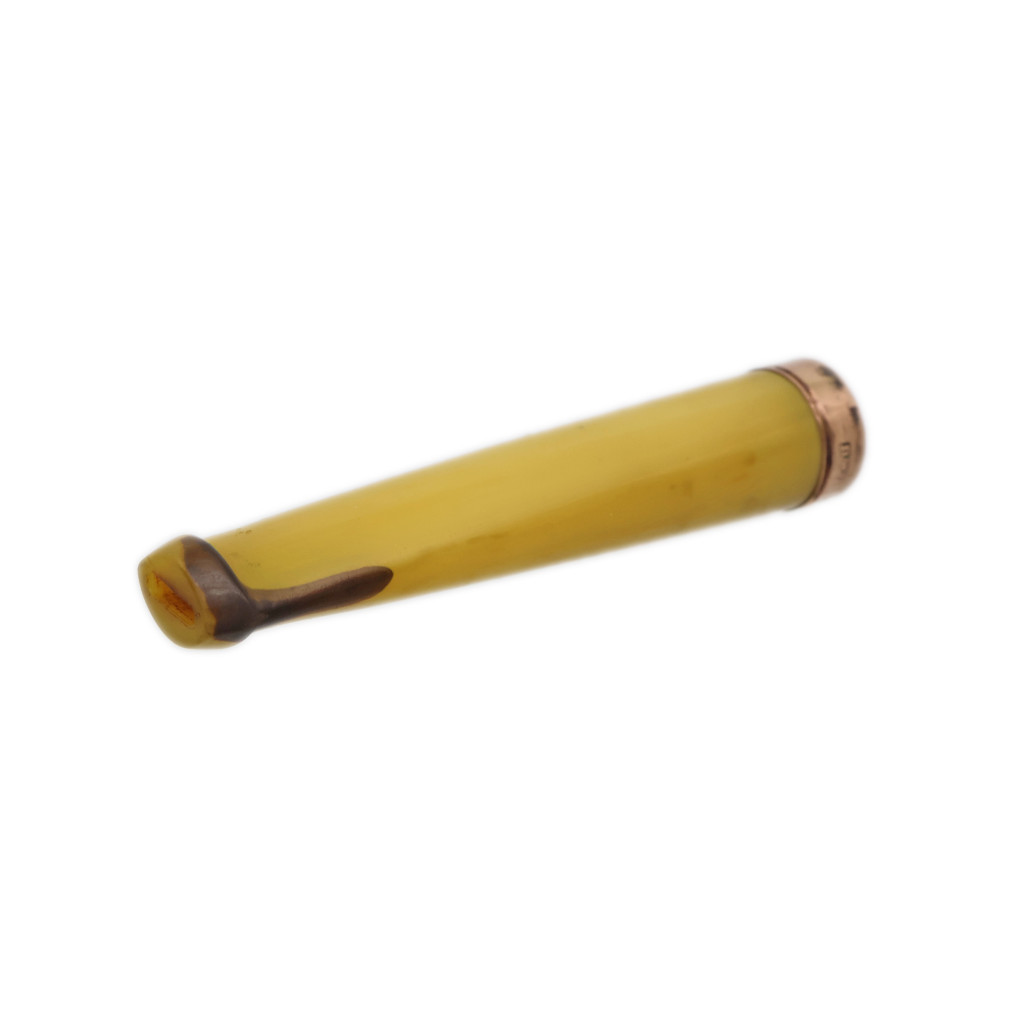 Stříbrné pouzdro s jantarovou špičkou se zlatem