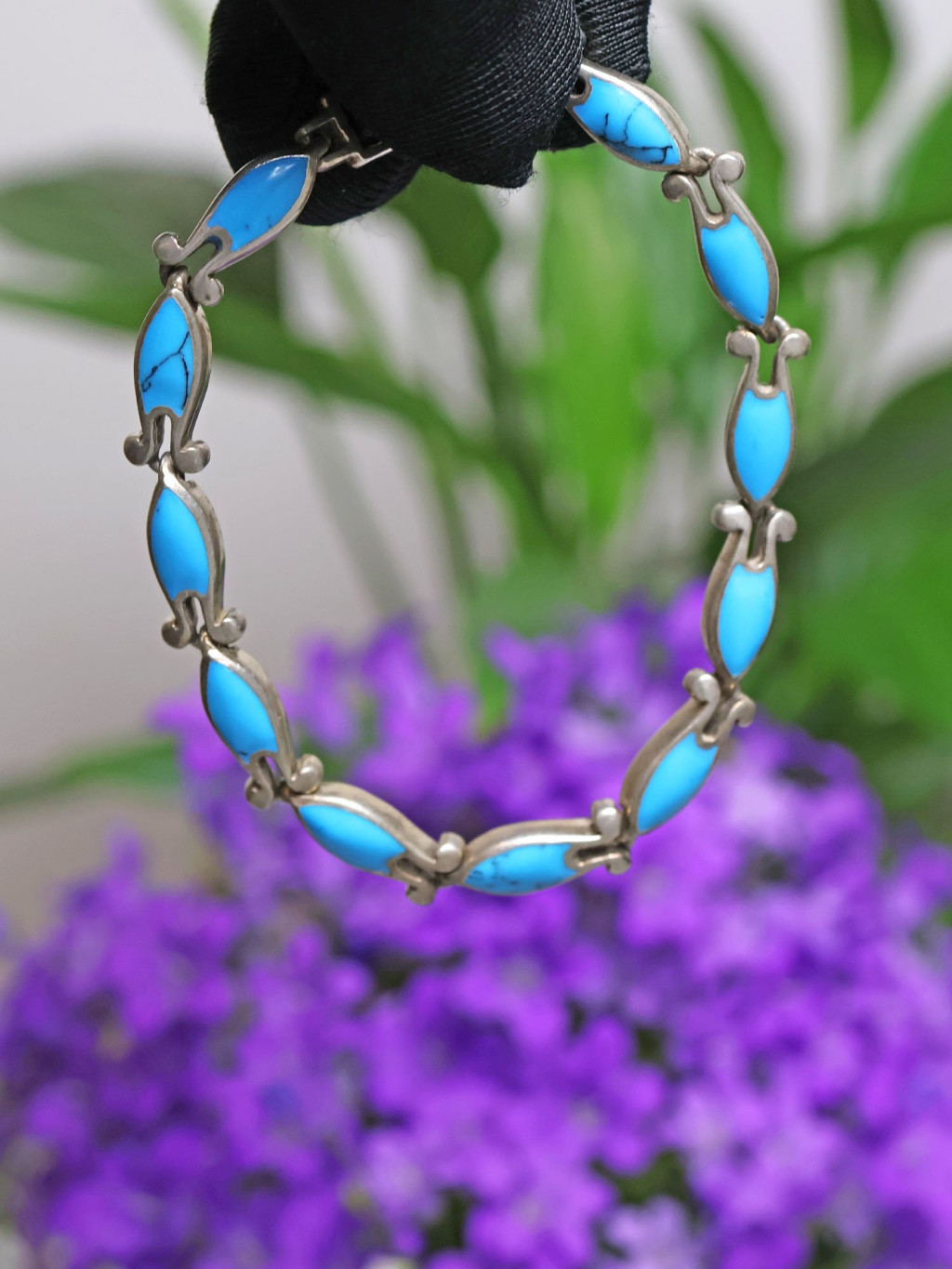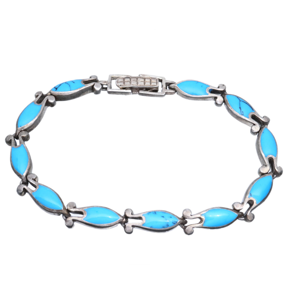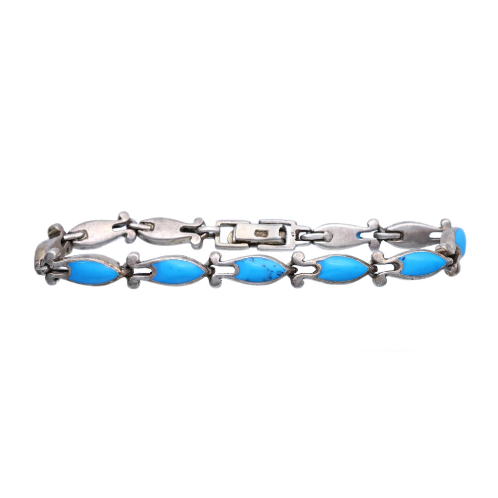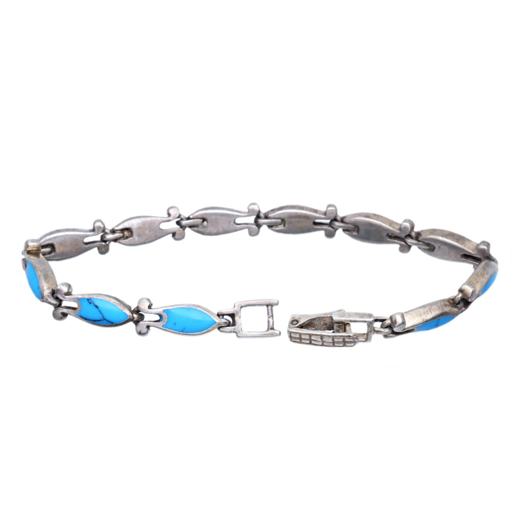 Stříbrný náramek s tyrkysově zbarvenými kameny