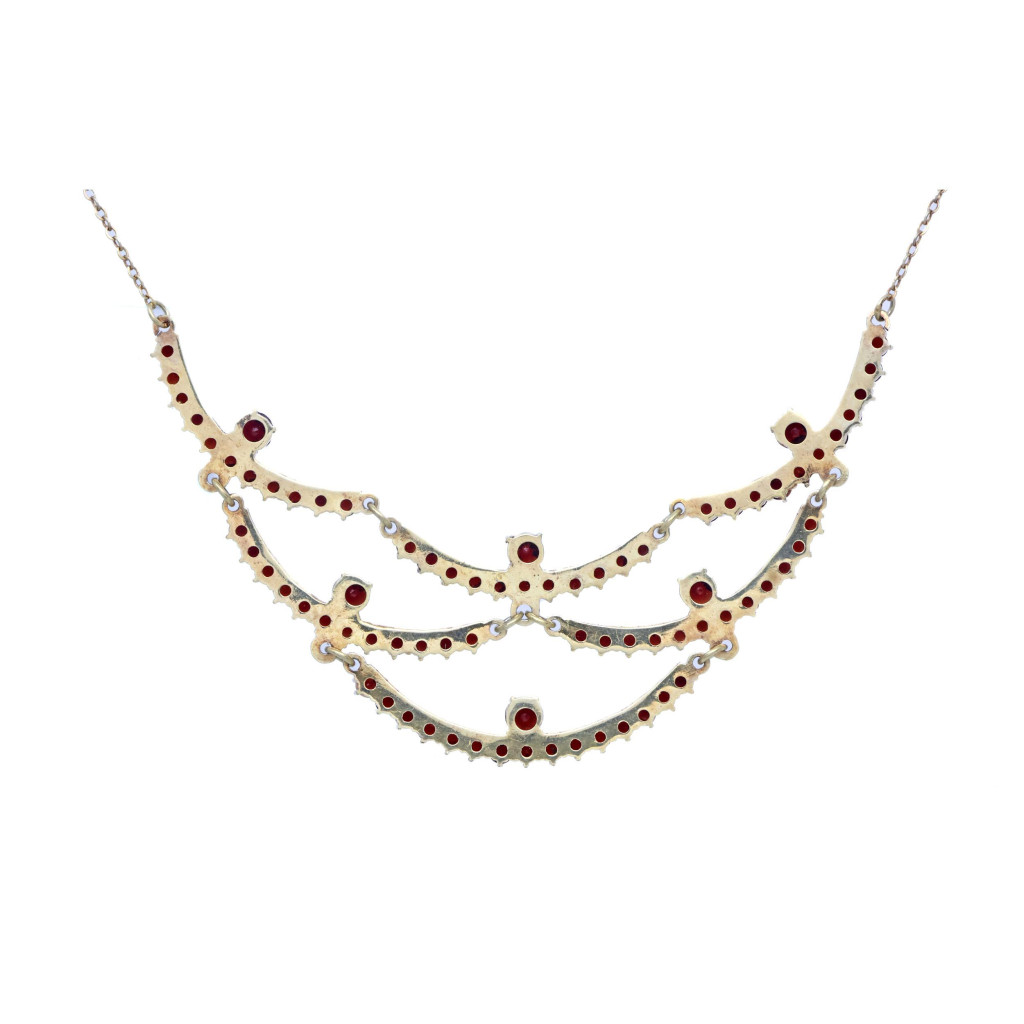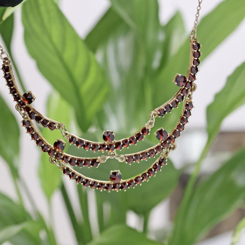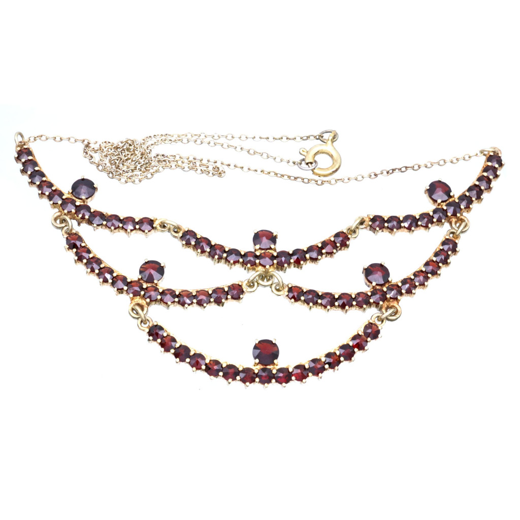 Stříbrný pozlacený koliér s českými granáty