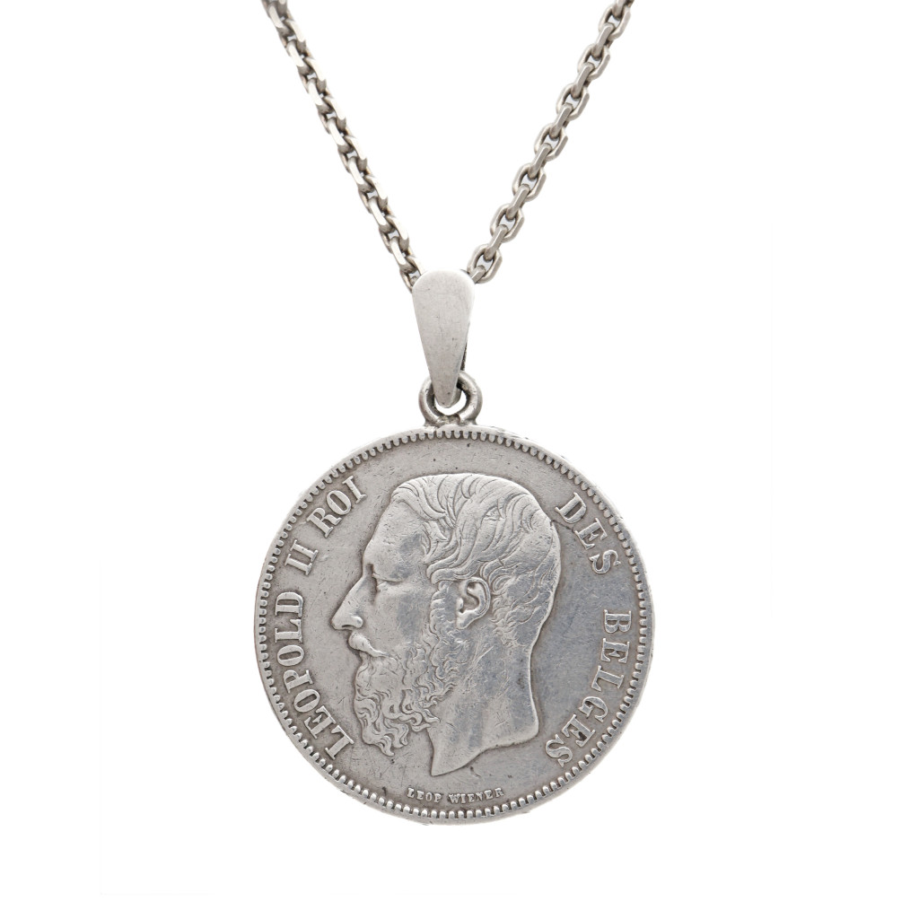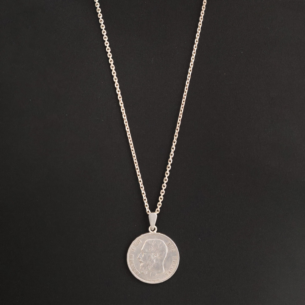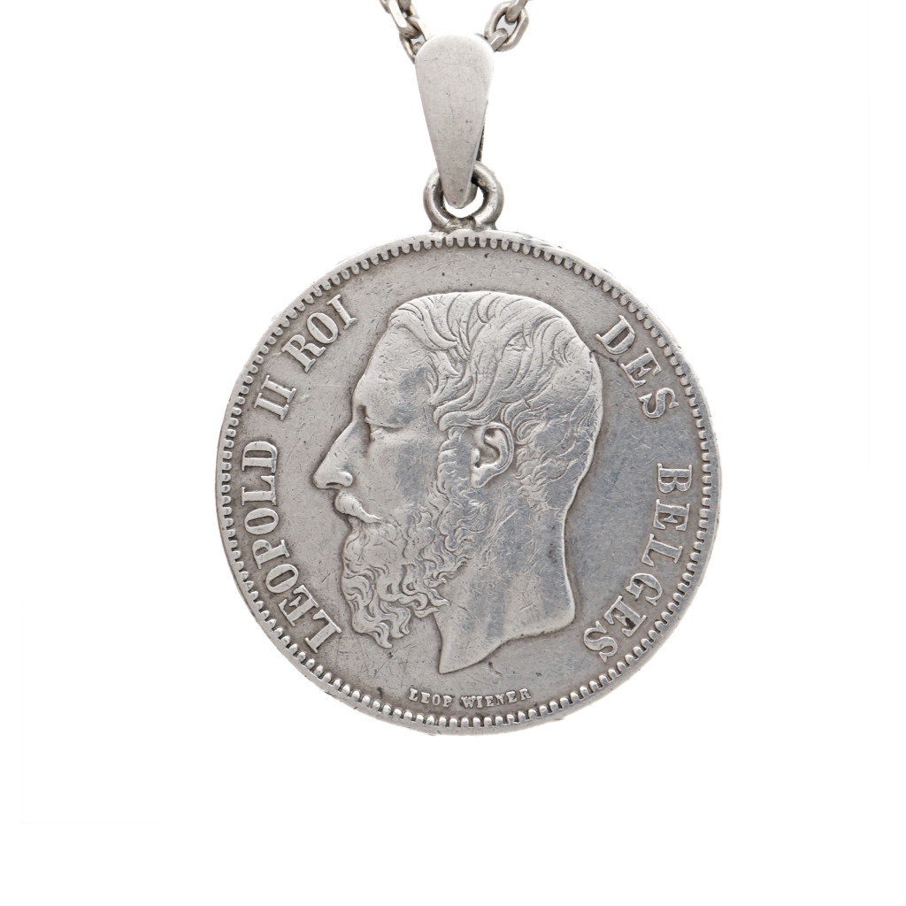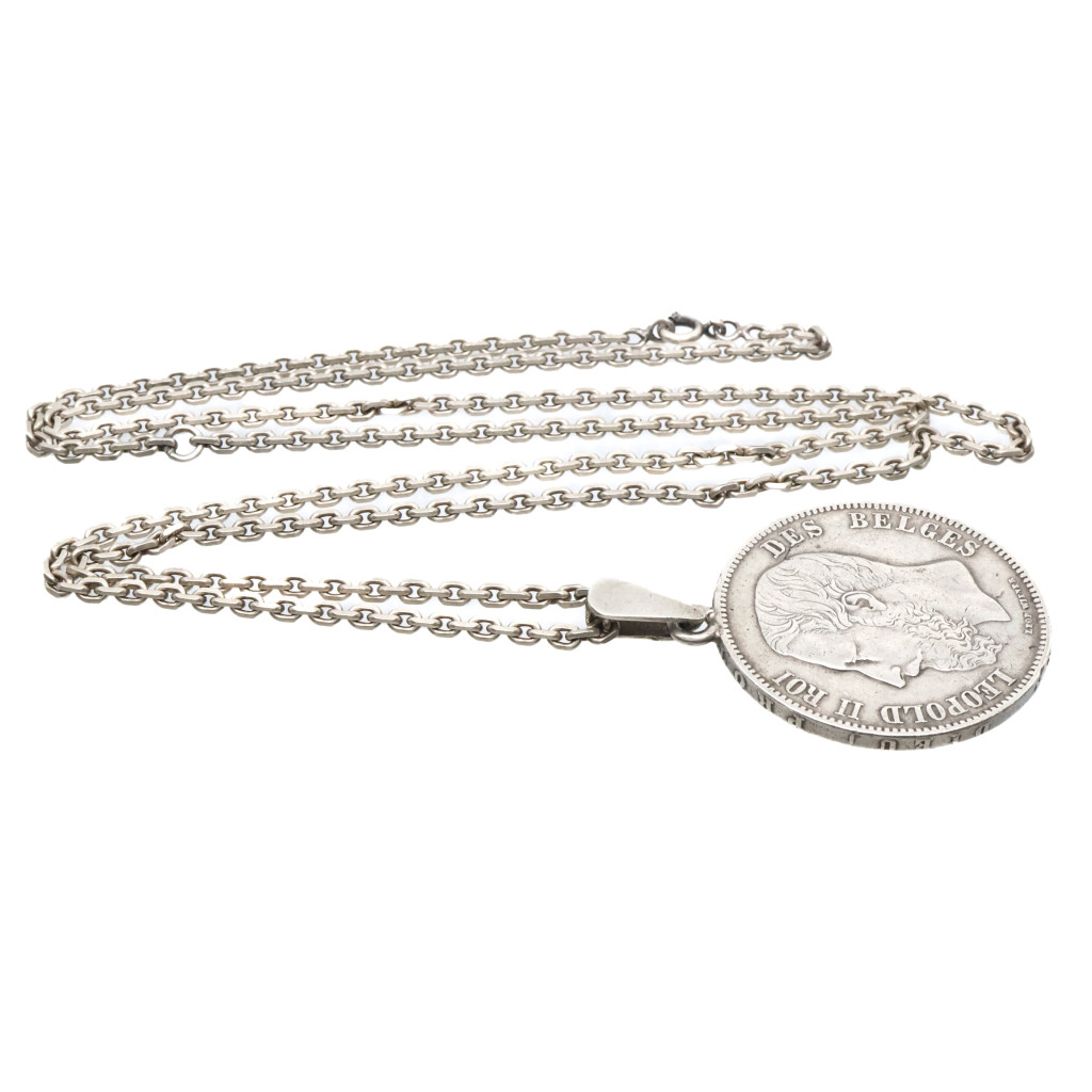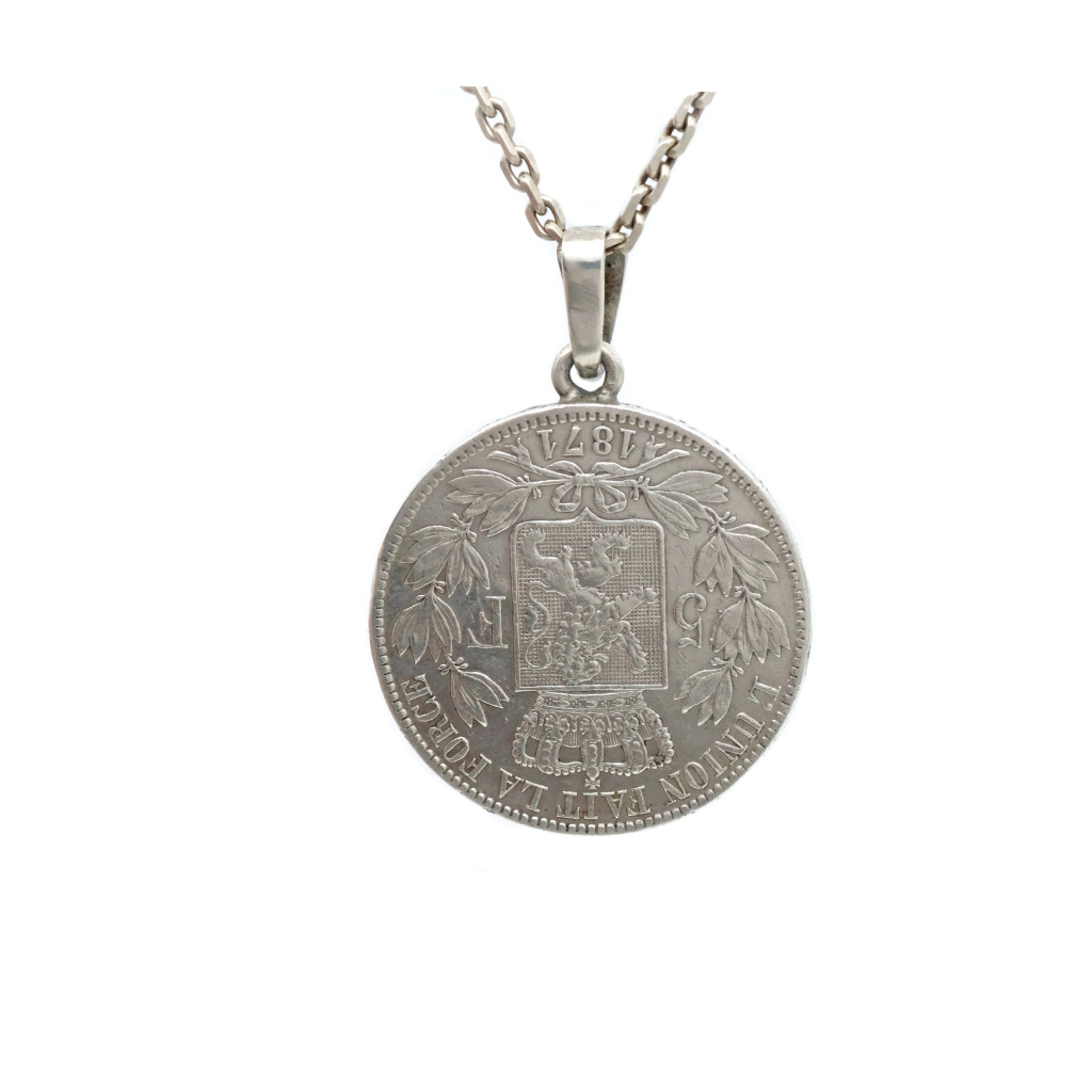 Stříbrný přívěsek s řetízkem, 5 Frank 1871