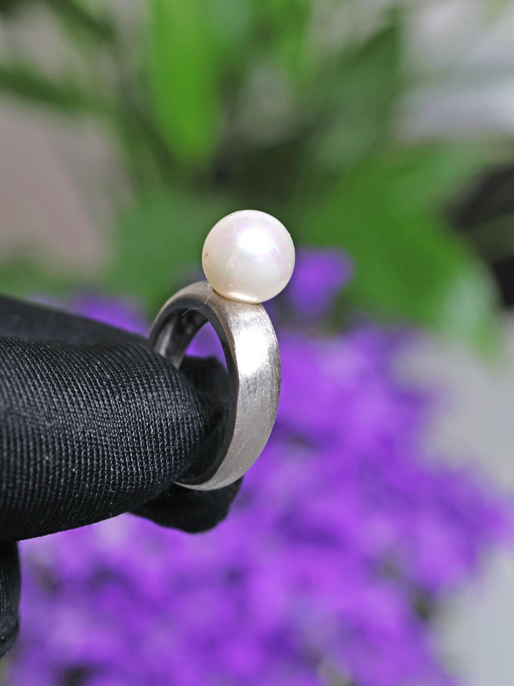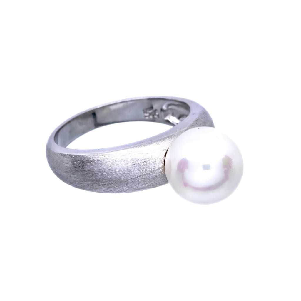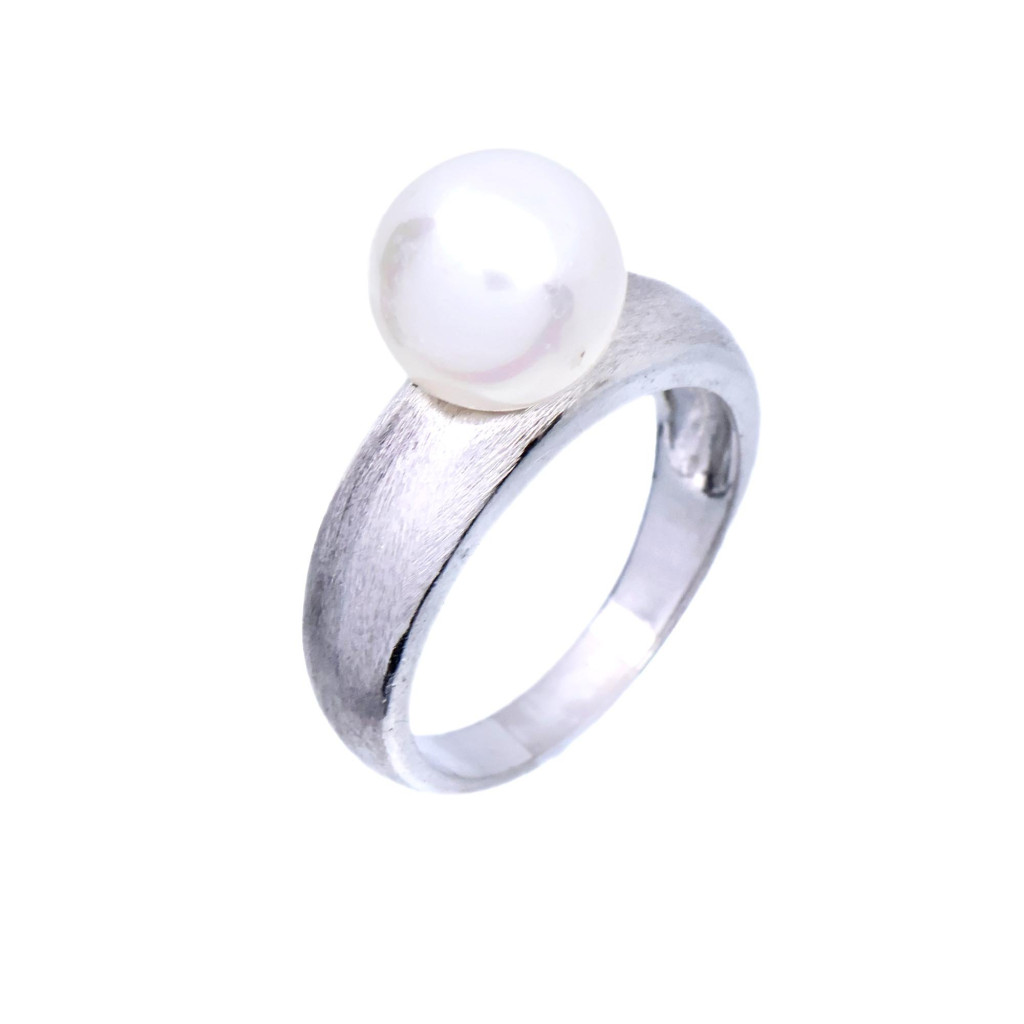 Stříbrný prsten s bílou perlou