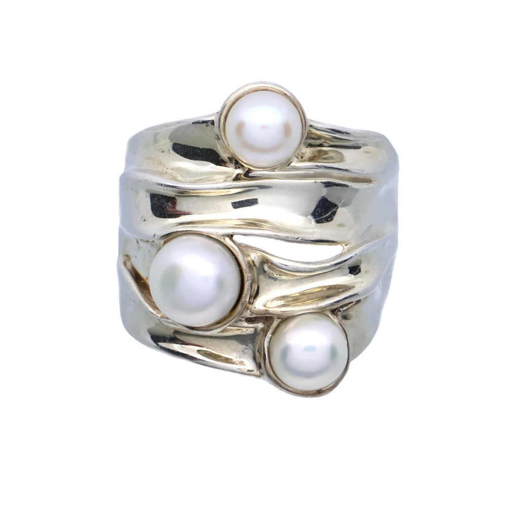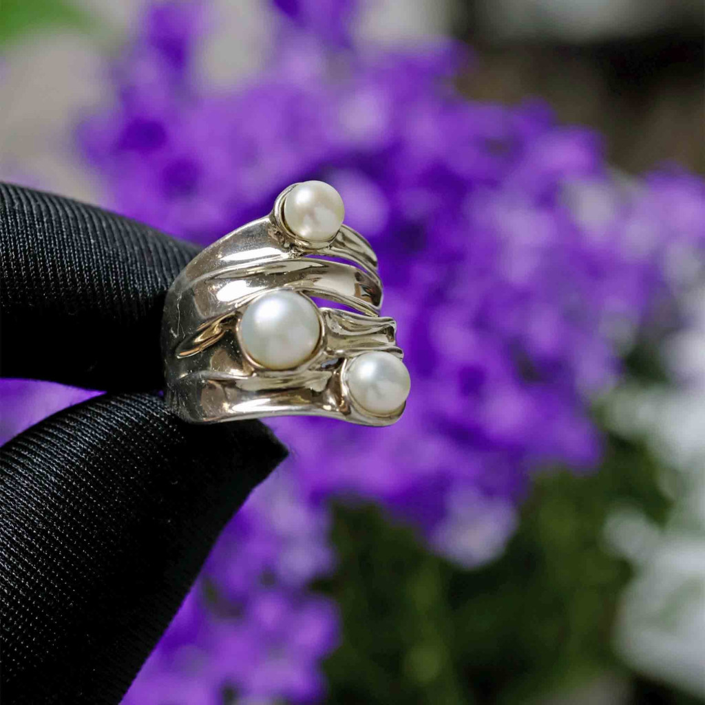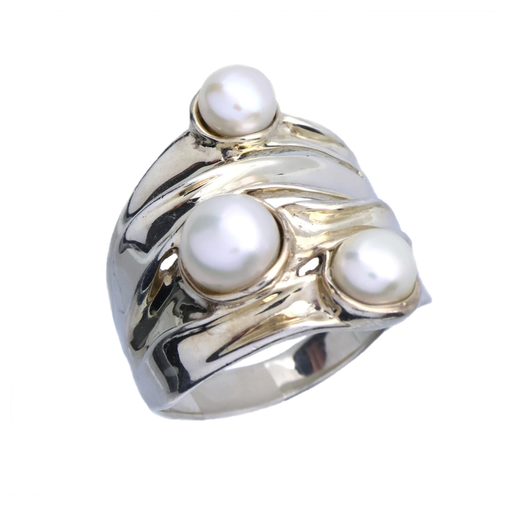 Stříbrný prsten s perlami