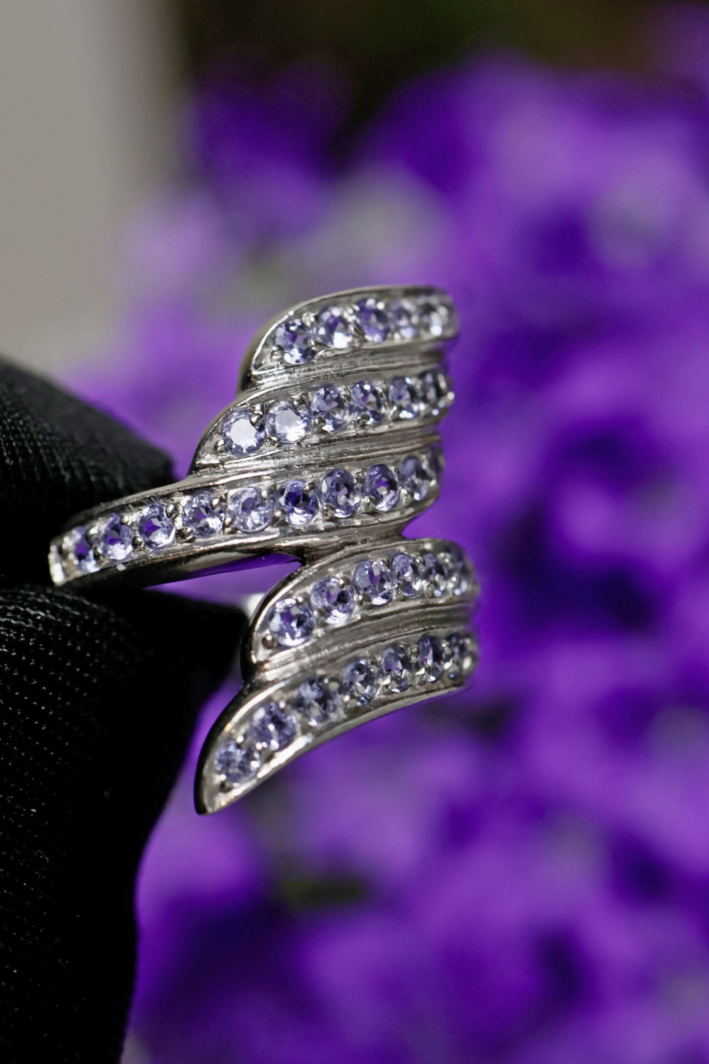 Stříbrný prsten s přírodními tanzanity
