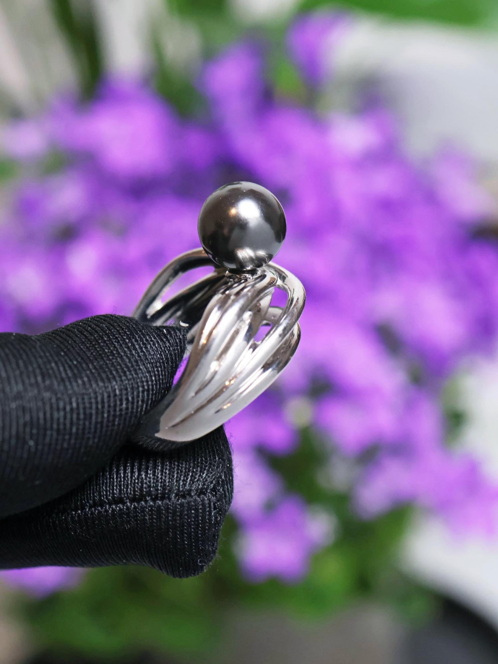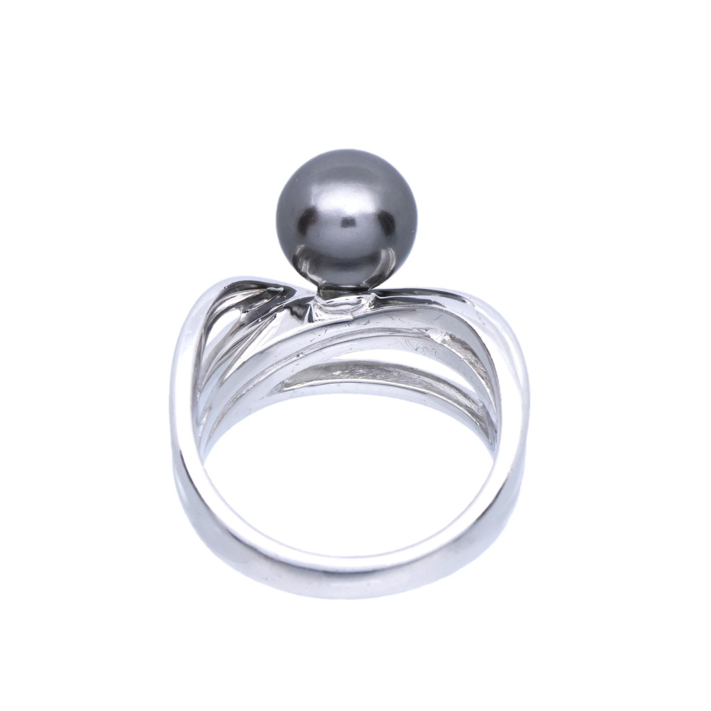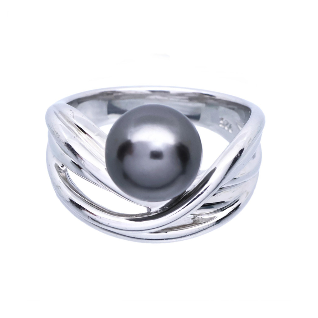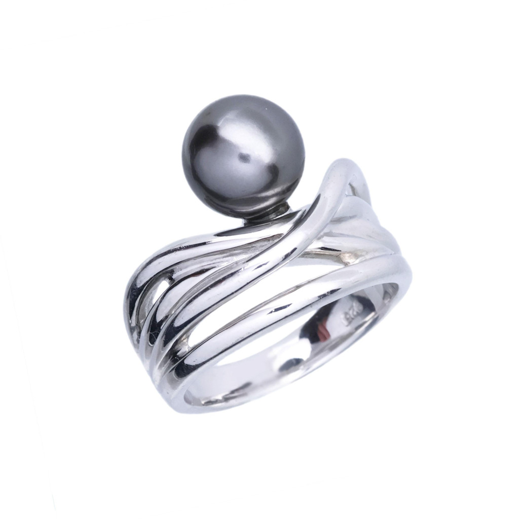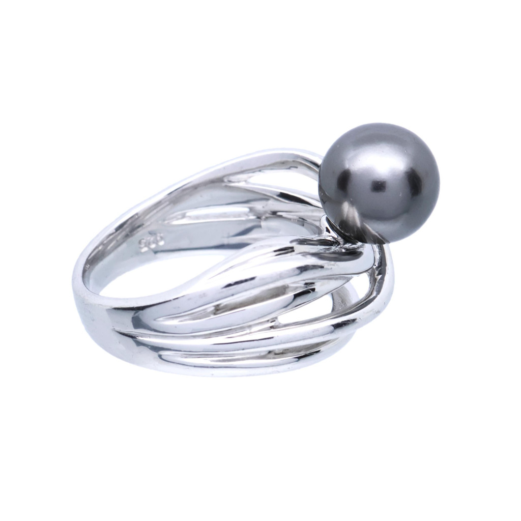 Stříbrný prsten s tmavou perlou