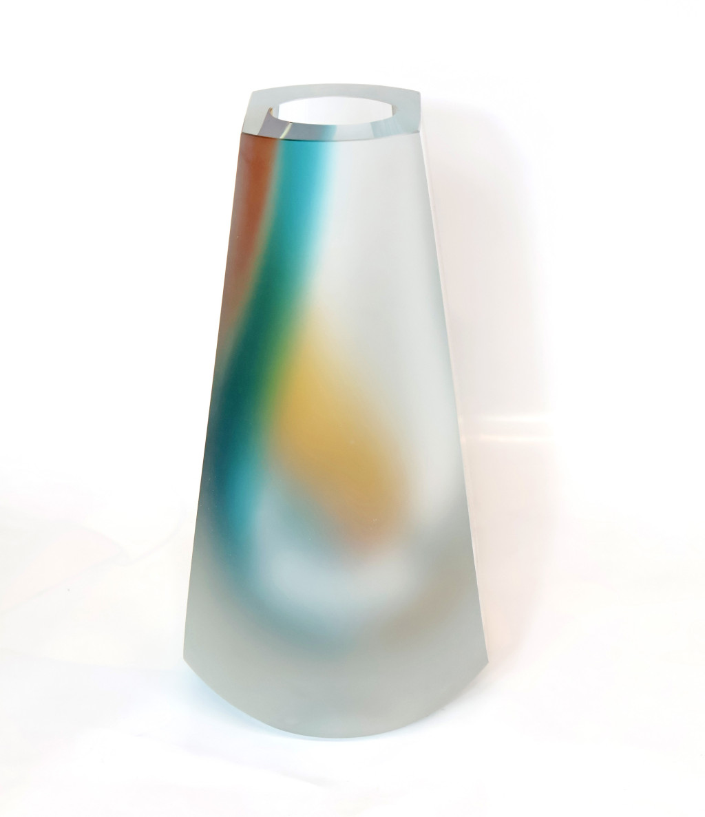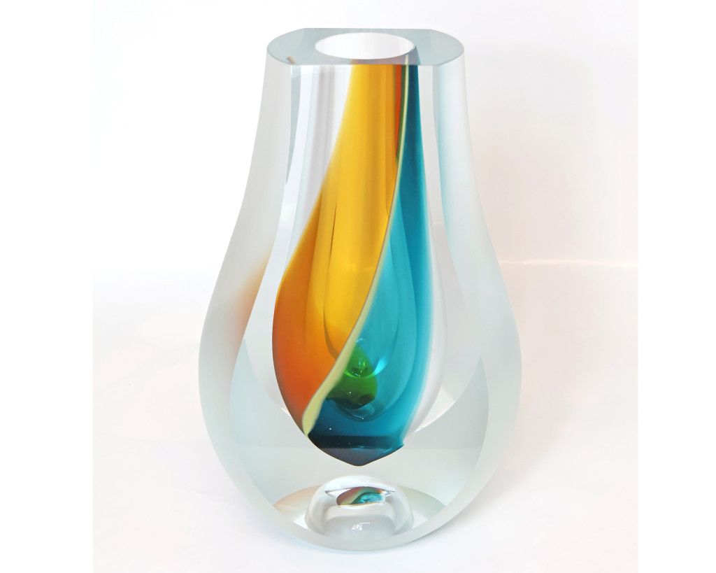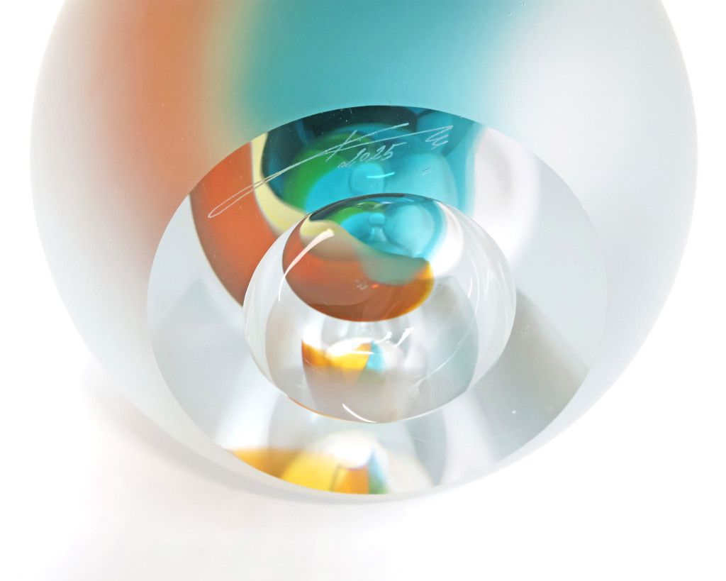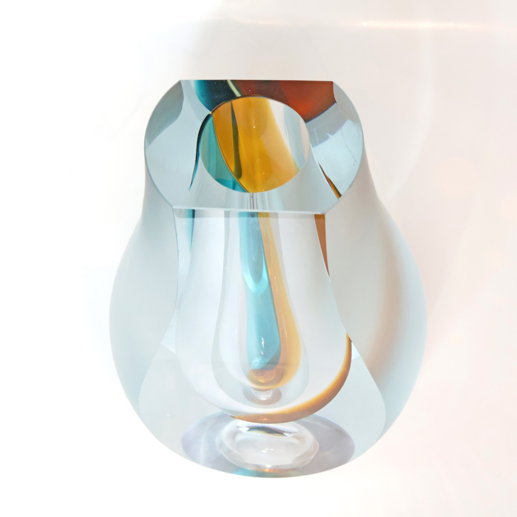 Materiál: Leštěné a matované sklo s vybroušenou čočkou, bezbarvé sklo s barevným jádrem