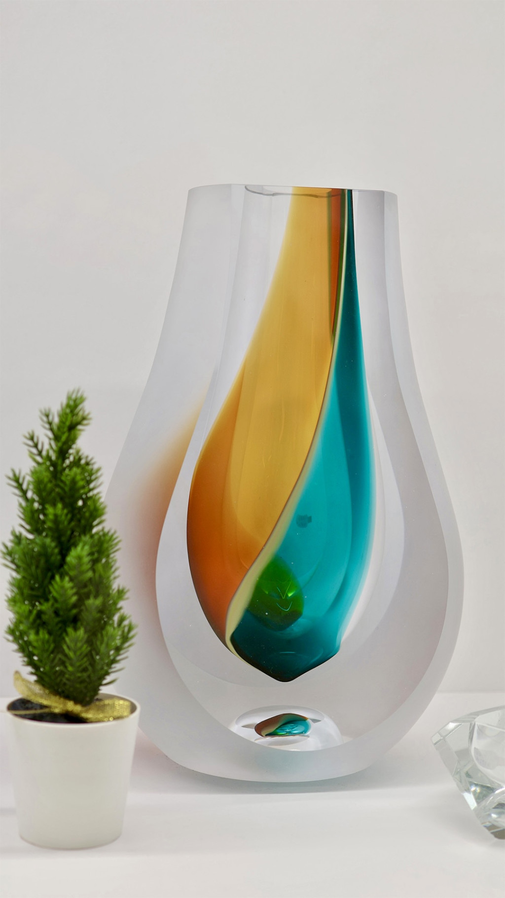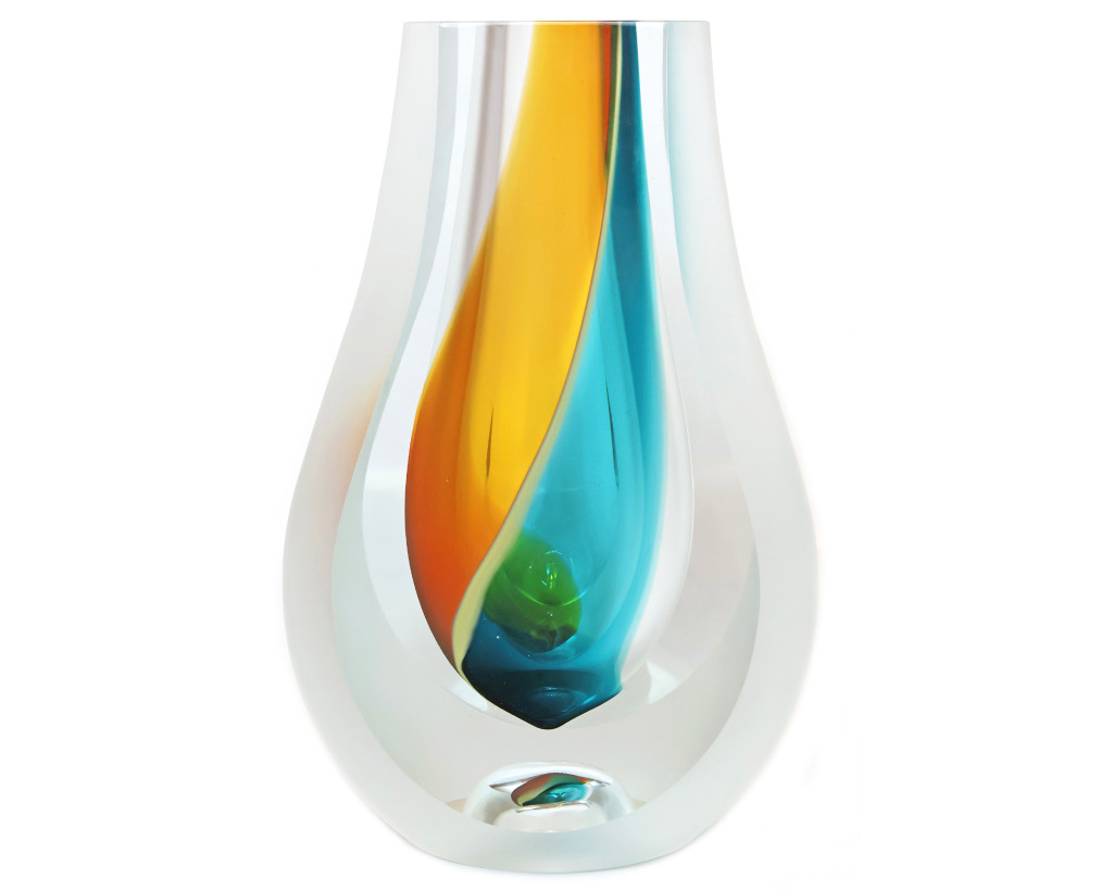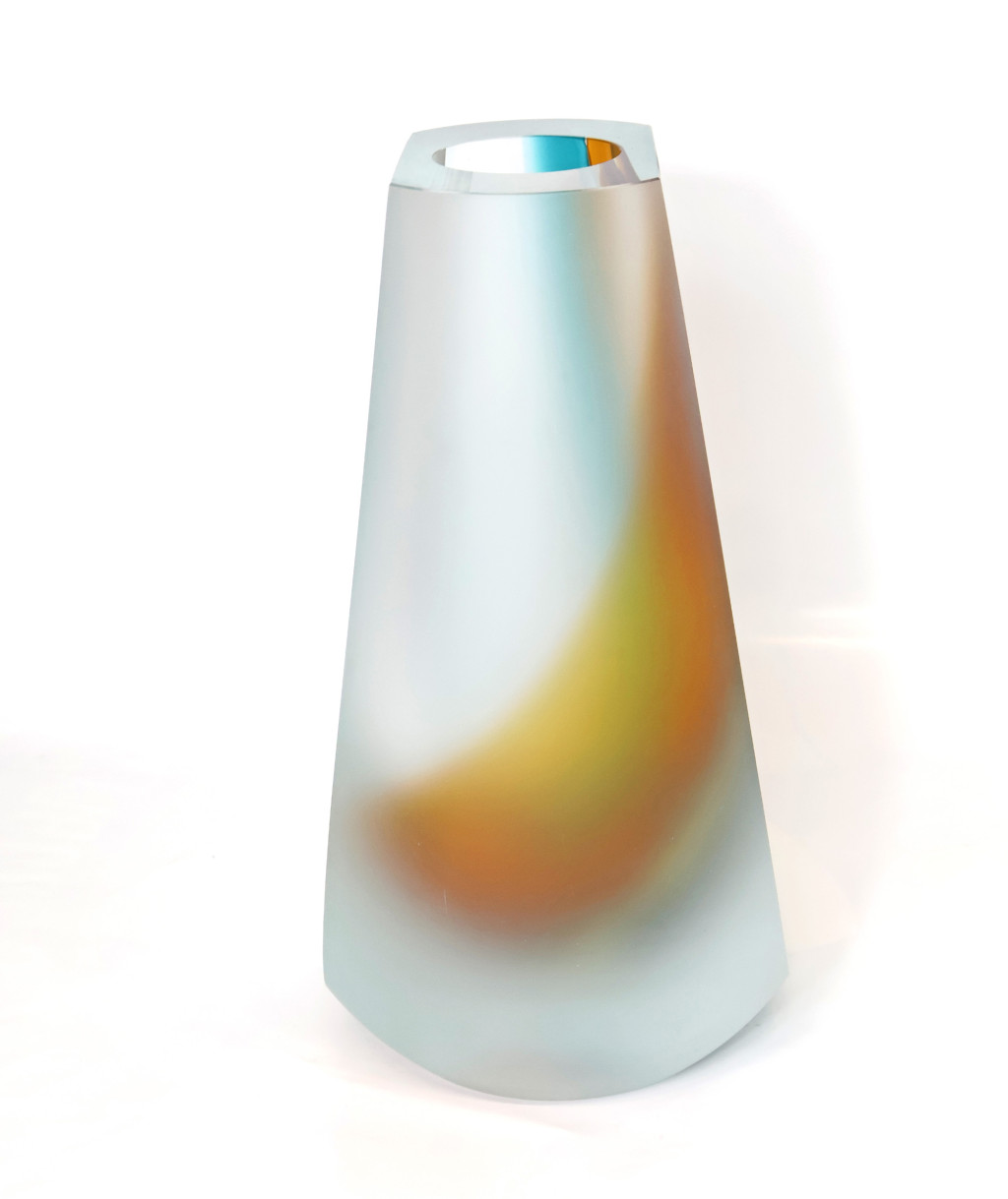 Materiál: Leštěné a matované sklo s vybroušenou čočkou, bezbarvé sklo s barevným jádrem