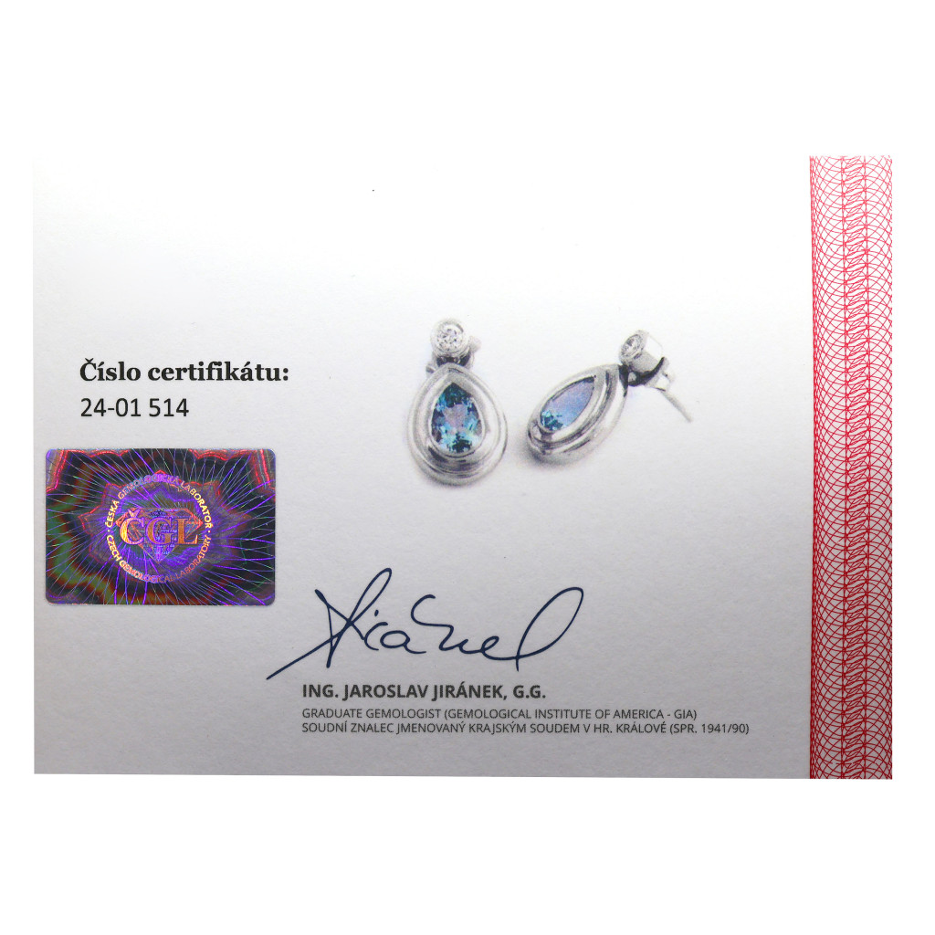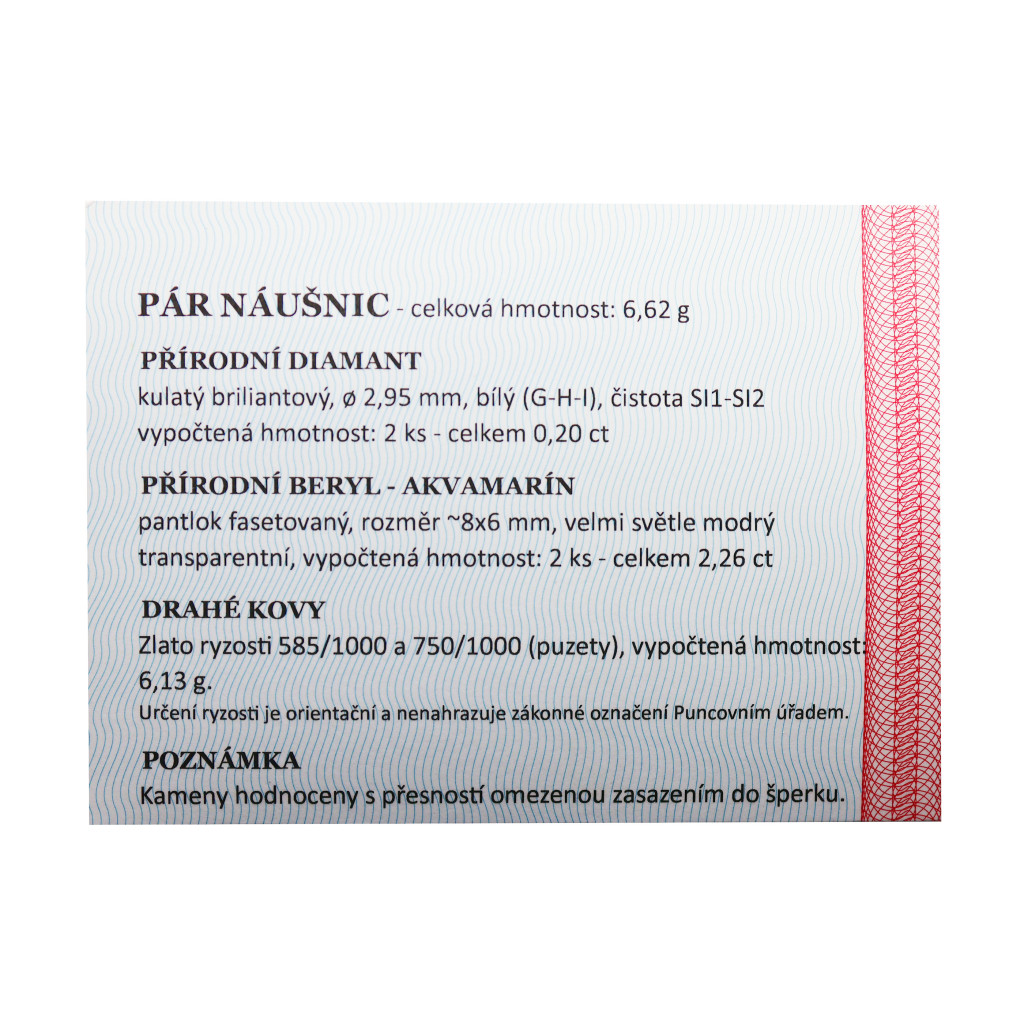Zlaté náušnice s akvamaríny 2,26 ct a brilianty+CERTIFIKÁT PRAVOSTI