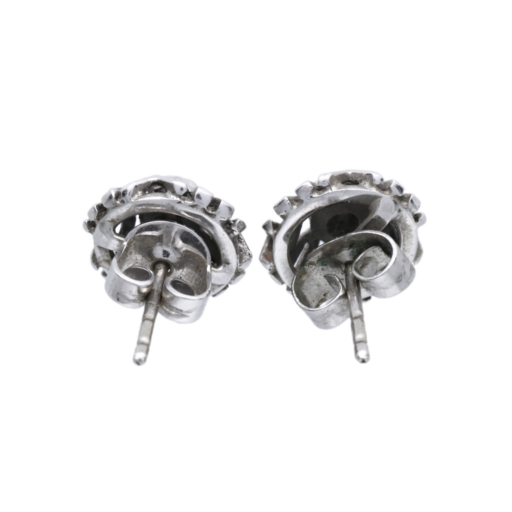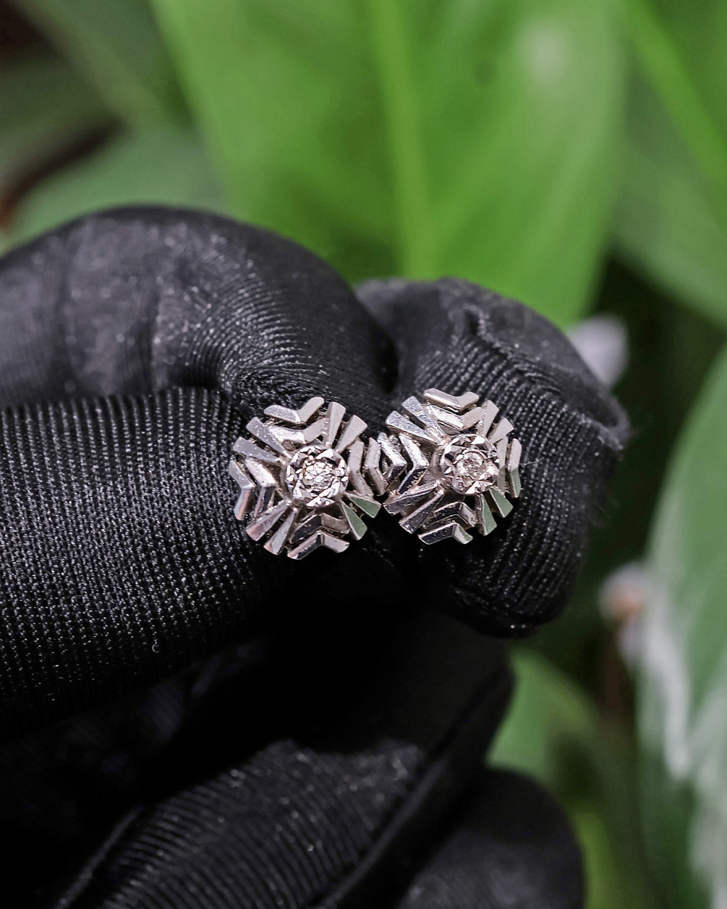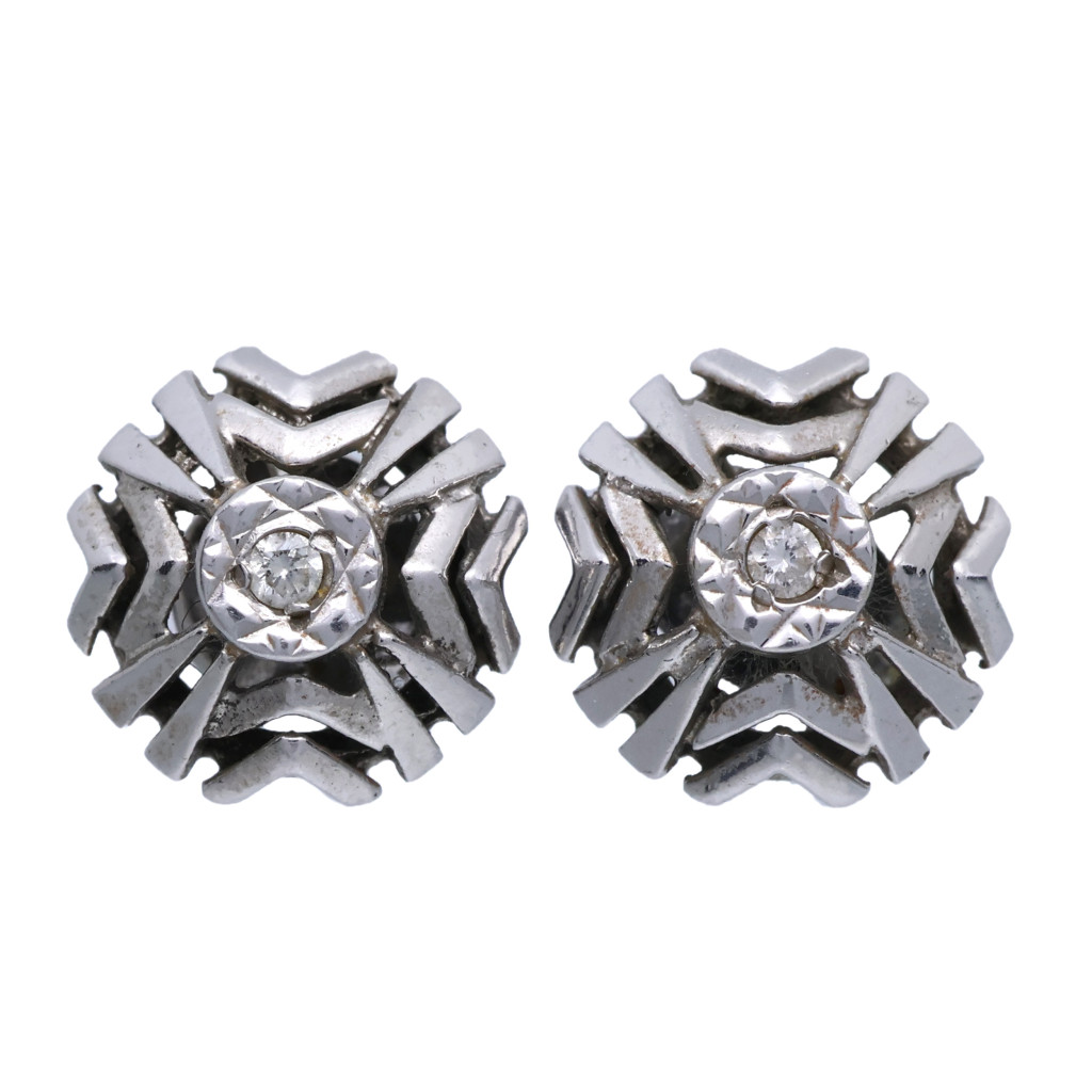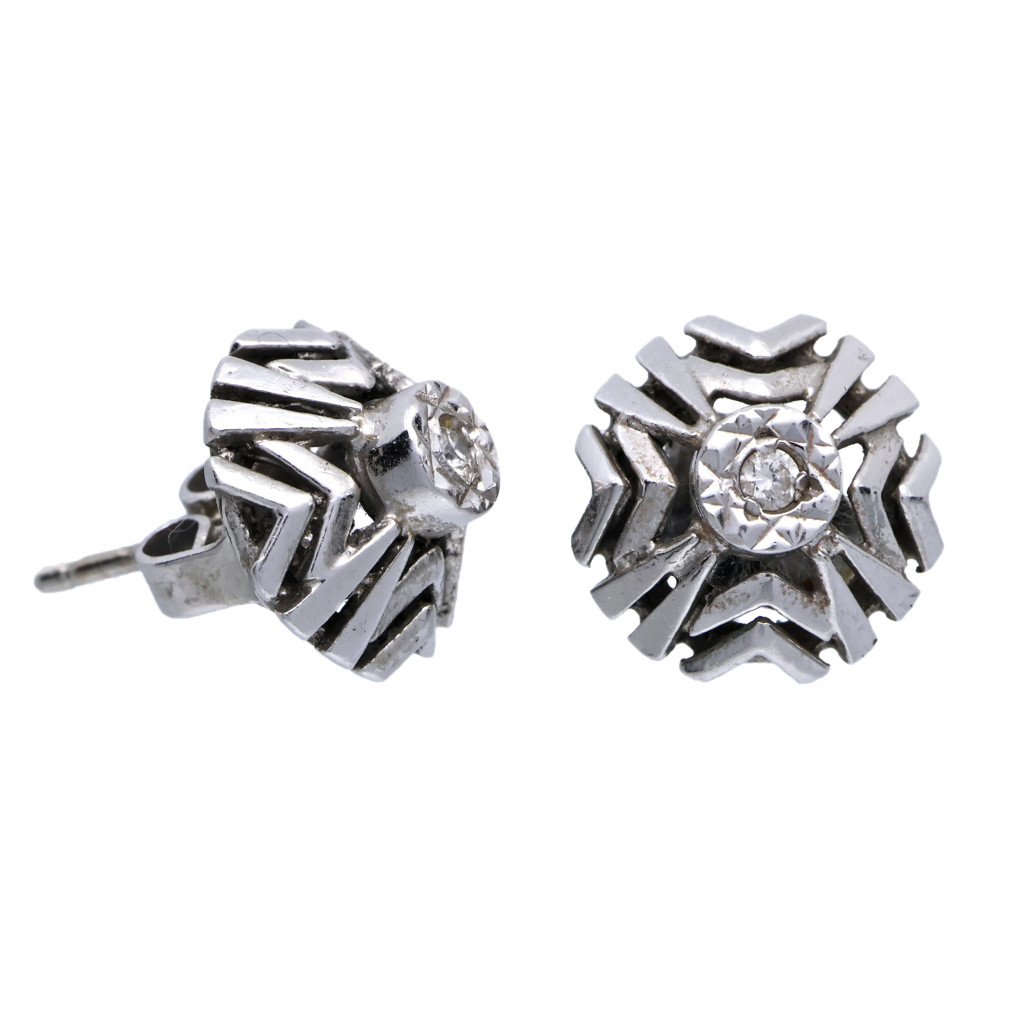 Zlaté náušnice s geometrickým vzorem s diamanty.