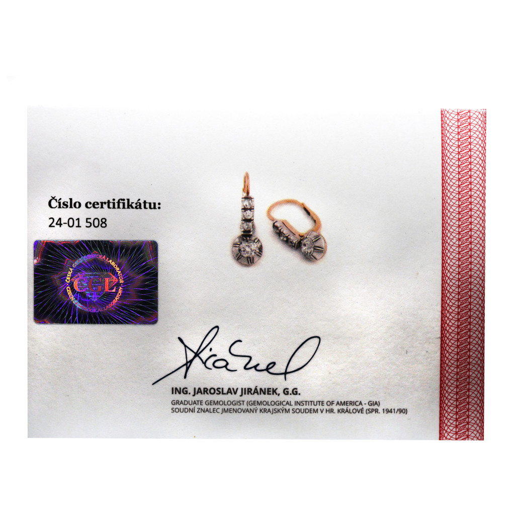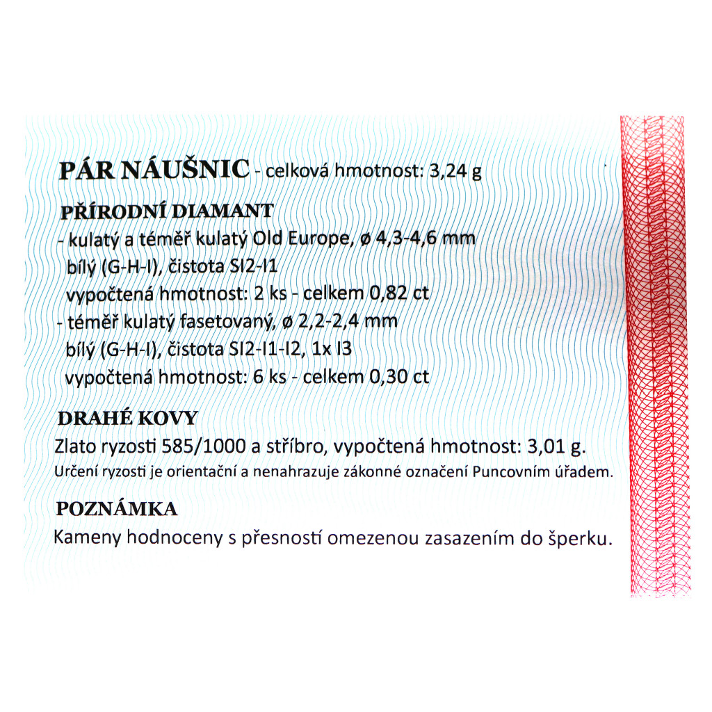 Zlaté náušnice s přířodními diamanty 1,12ct + CERTIFIKÁT PRAVOSTI