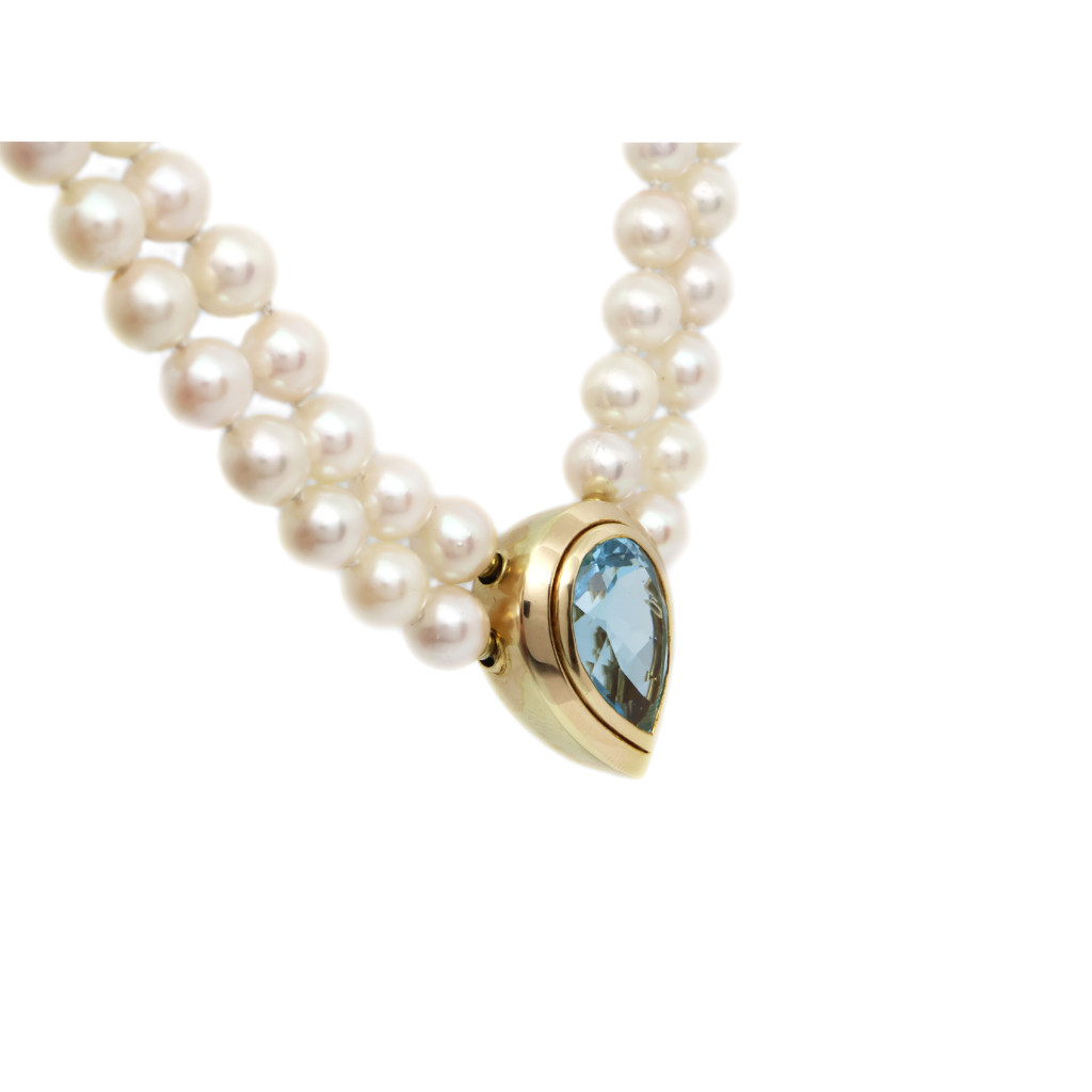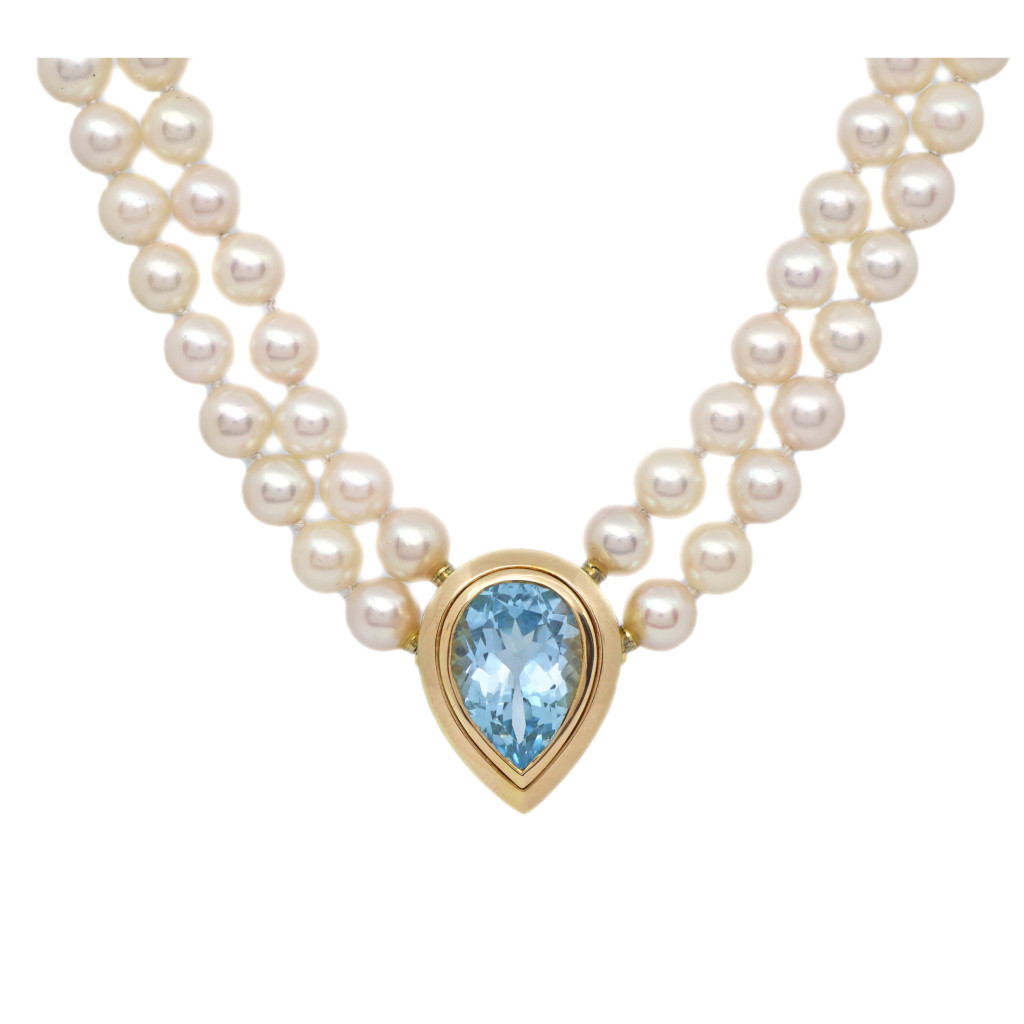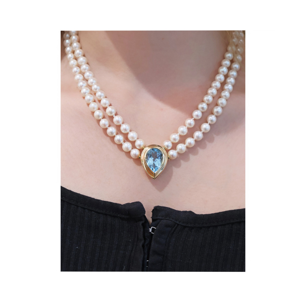 Zlatý náhrdelník s mořskými perlami Akoya a přírodním velkým topasem