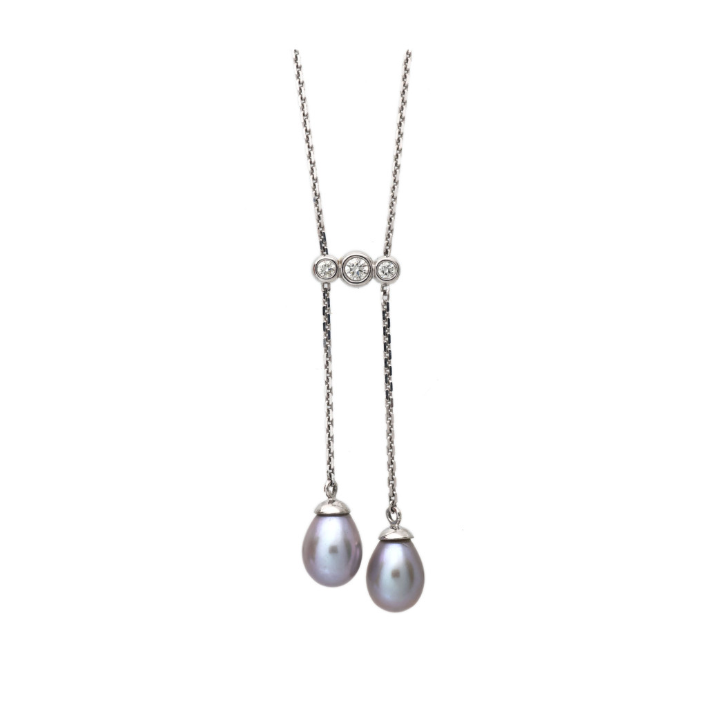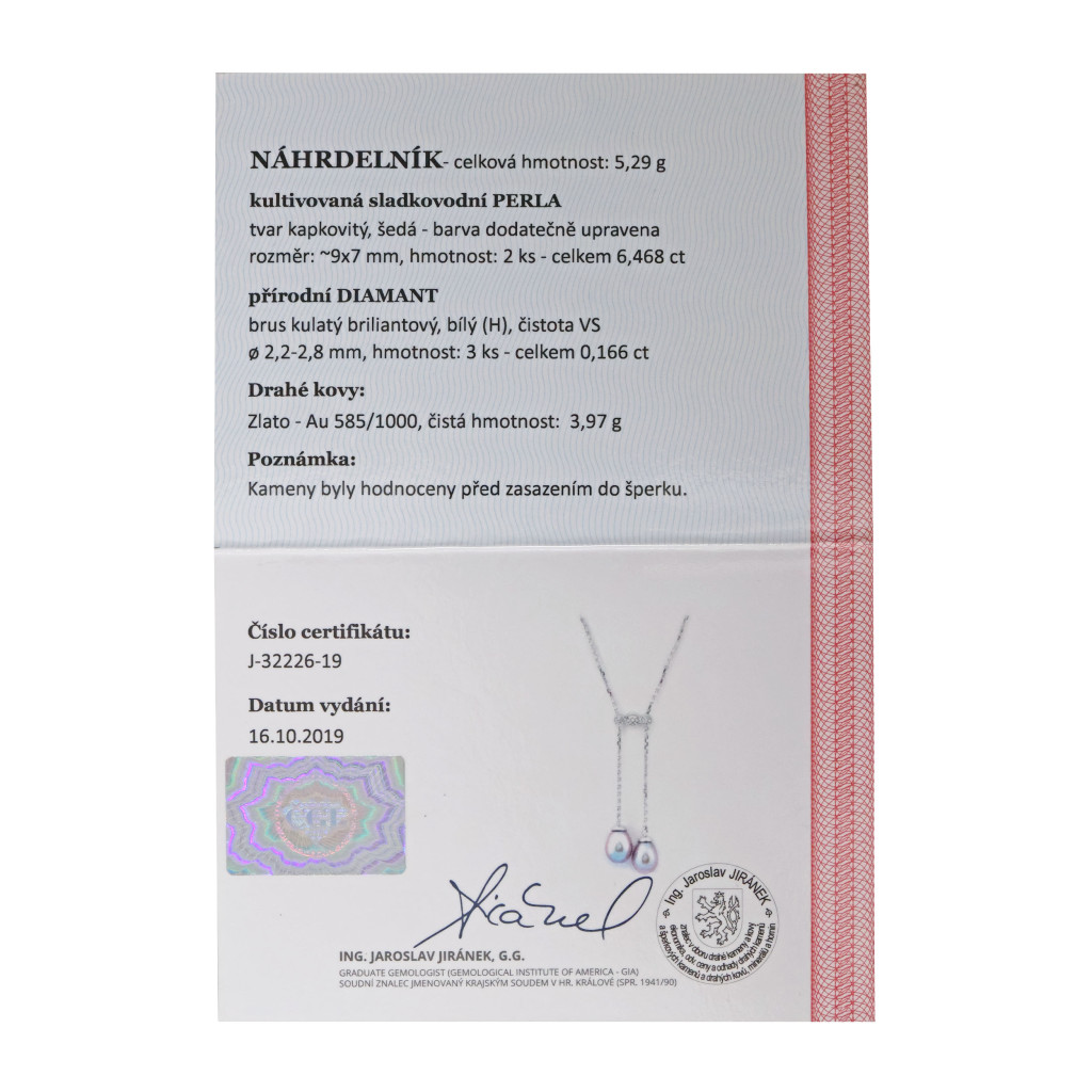 Zlatý náhrdelník s přírodními brilianty a perlami + CERTIFIKÁT PRAVOSTI