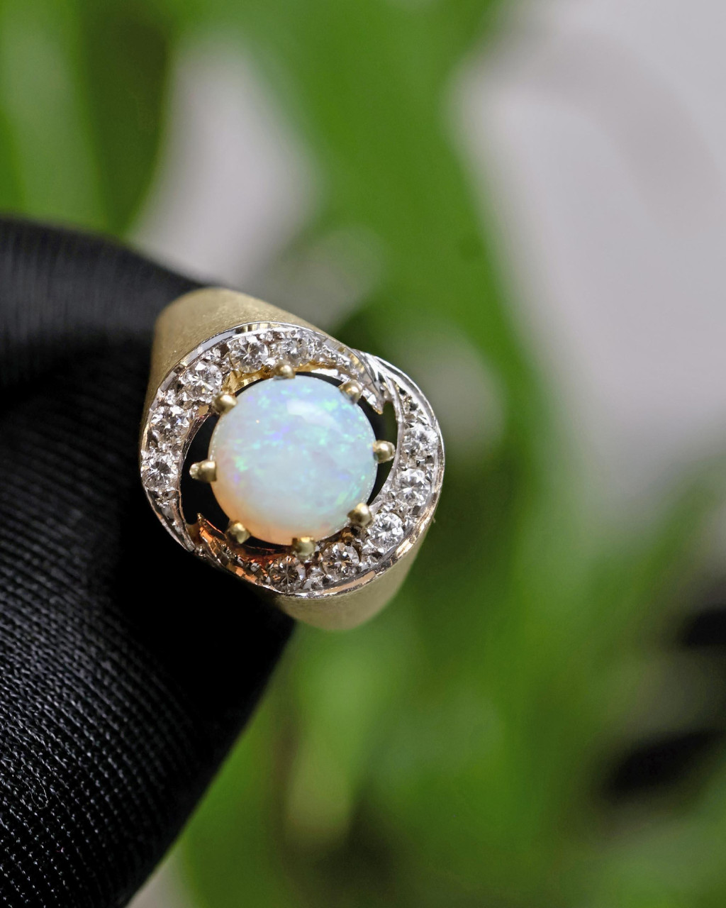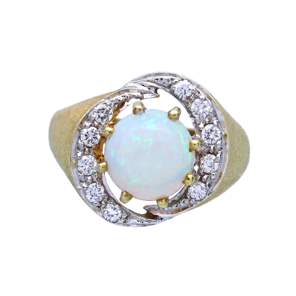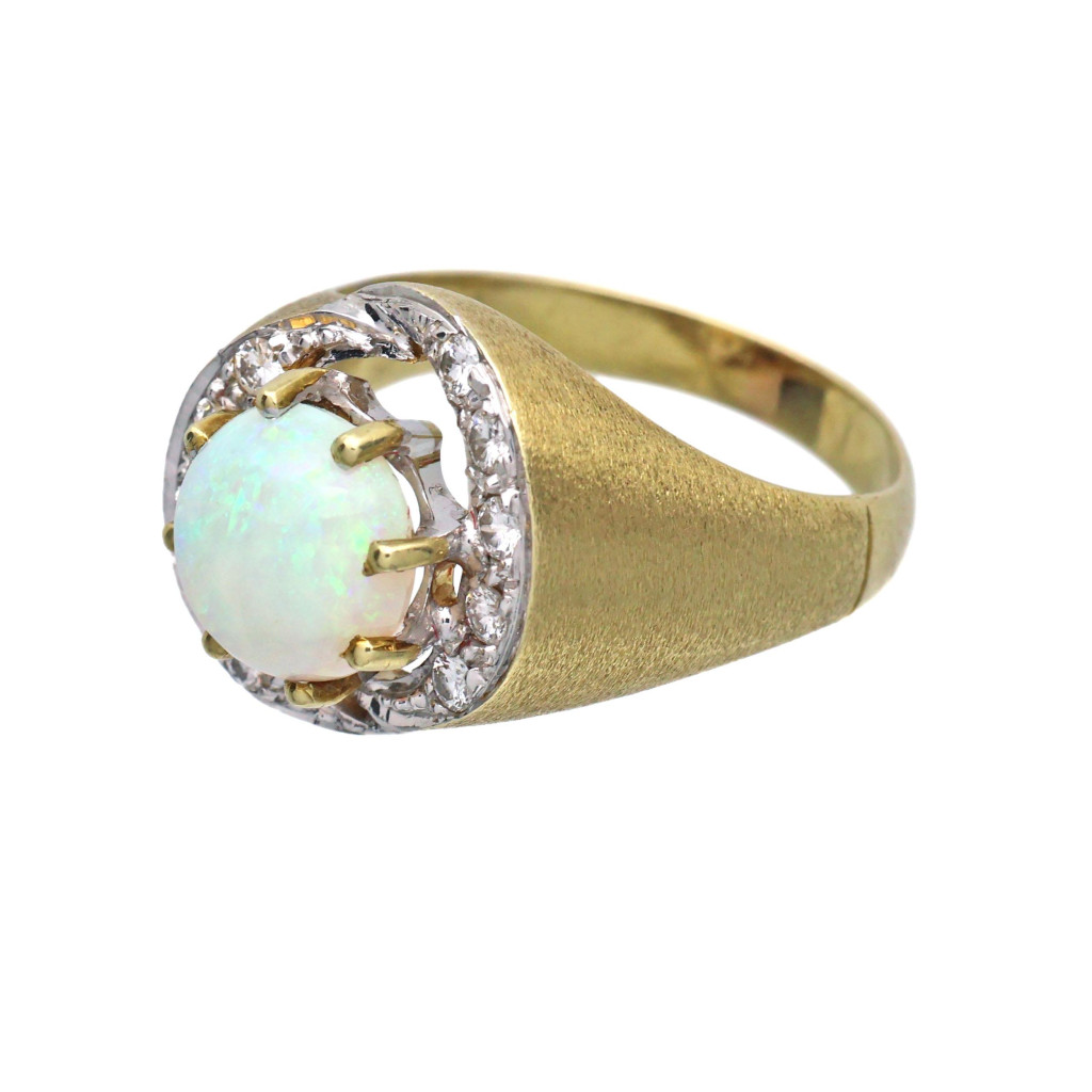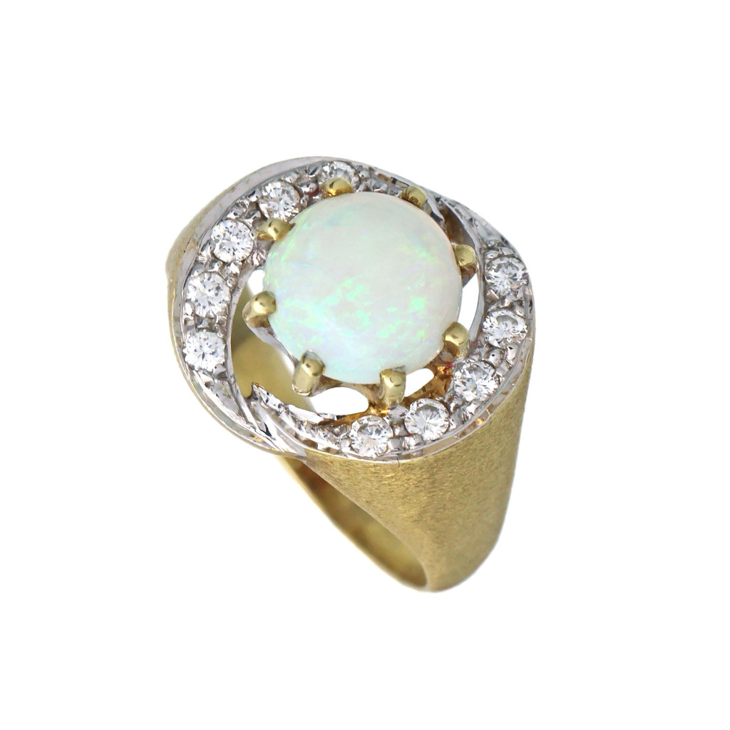 Prsten ve zlatě s opálem osazený brilianty z 80.let 20.století.