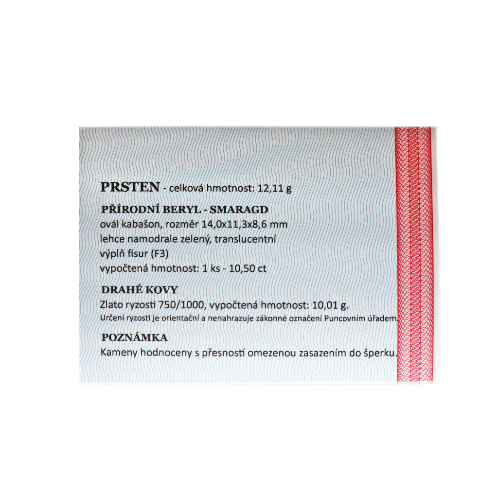 Zlatý prsten s přírodním smaragdem 10,5 ct + CERTIFIKÁT PRAVOSTI
