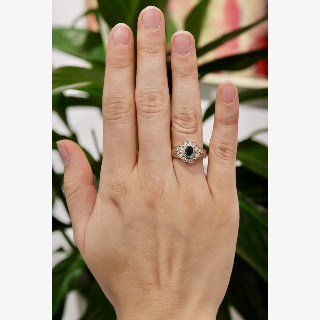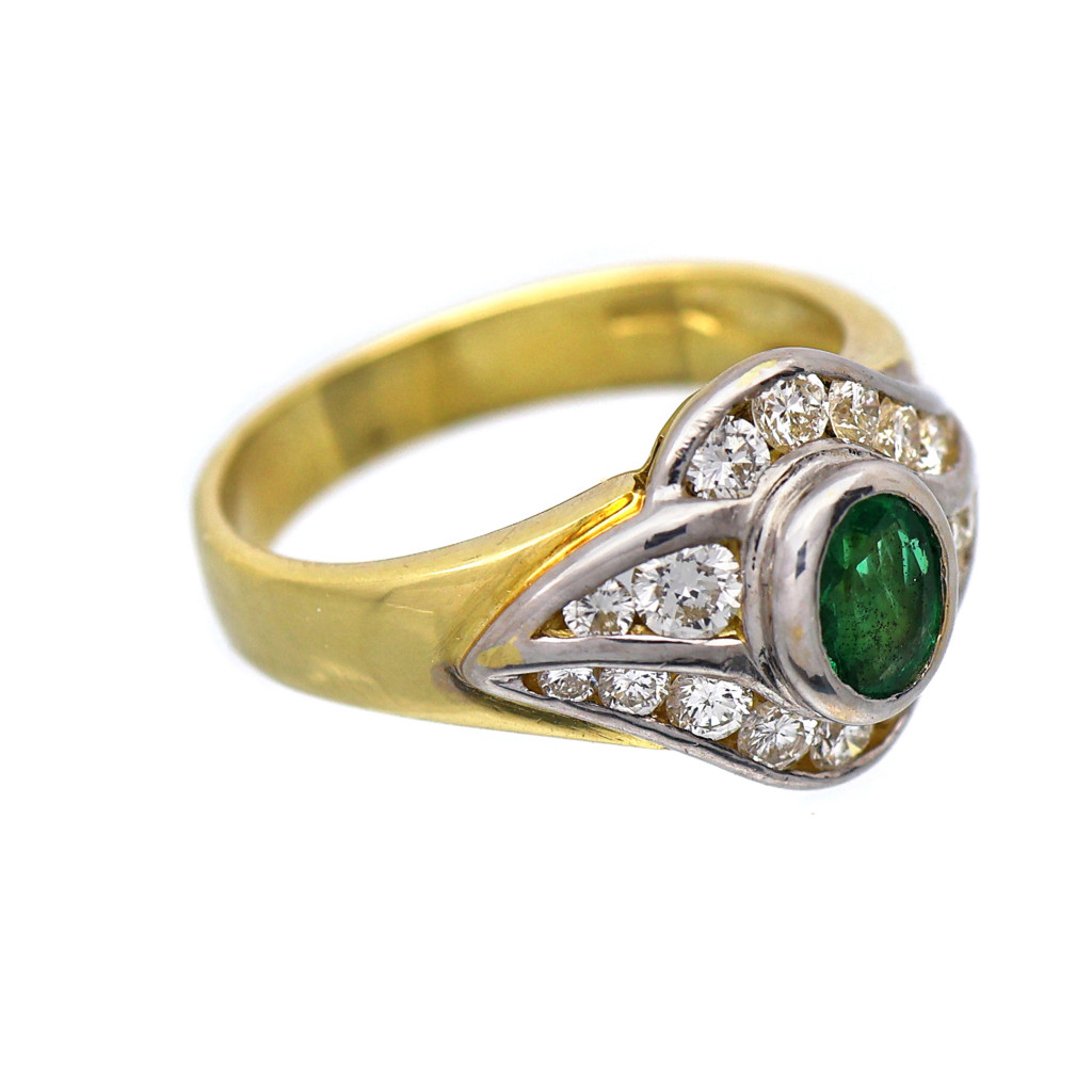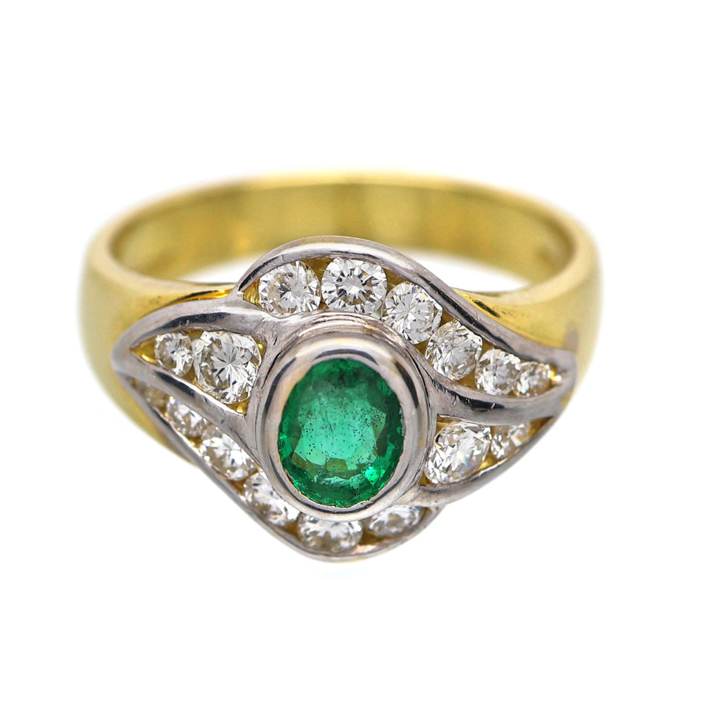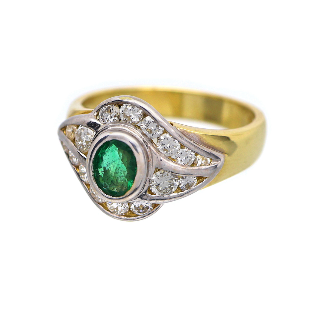 Zlatý prsten s přírodními brilianty 0,50 ct a smaragdem
