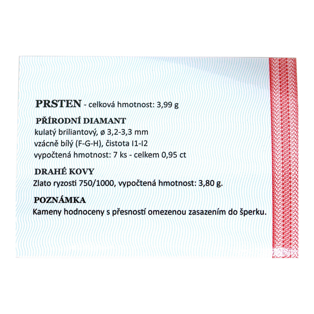 Zlatý prsten s přírodními brilianty 0,95 (vzácně bílý F-G-H) + CERTIFIKÁT