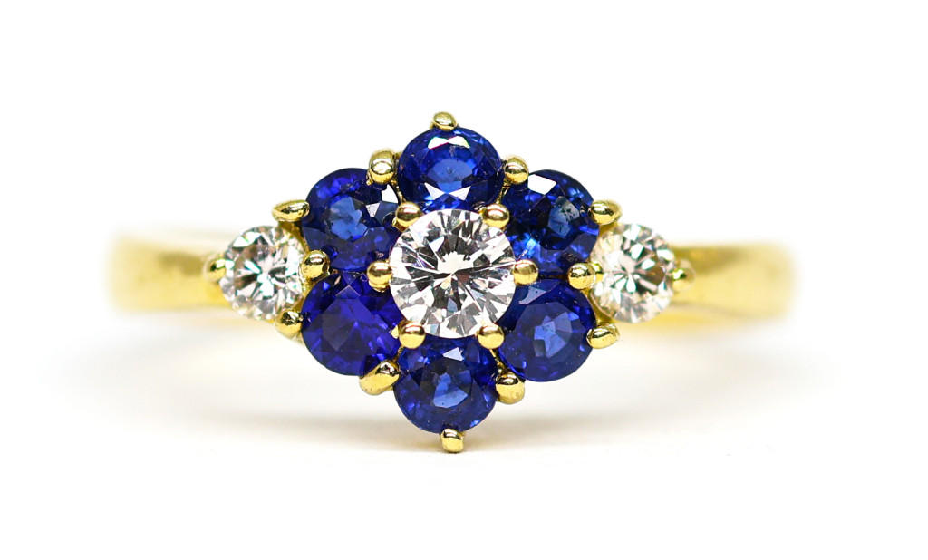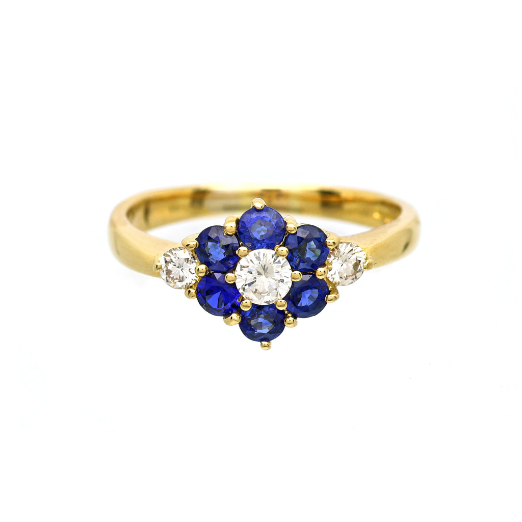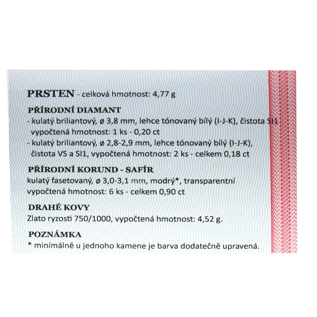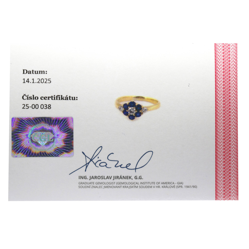 Zlatý prsten s přírodními brilianty a safíry + CERTIFIKÁT PRAVOSTI