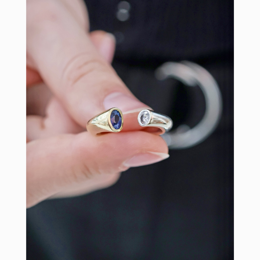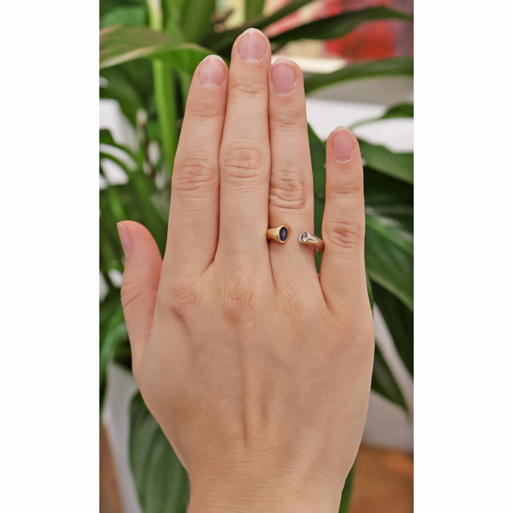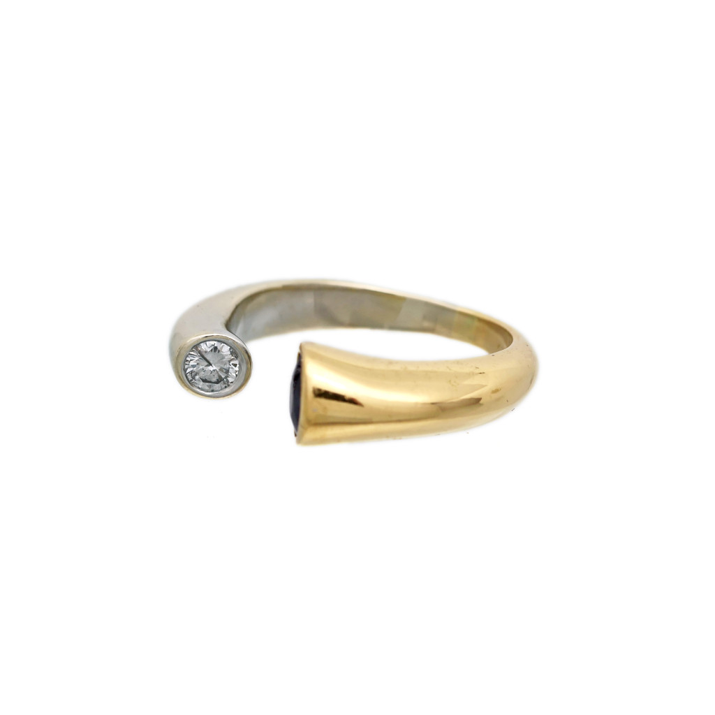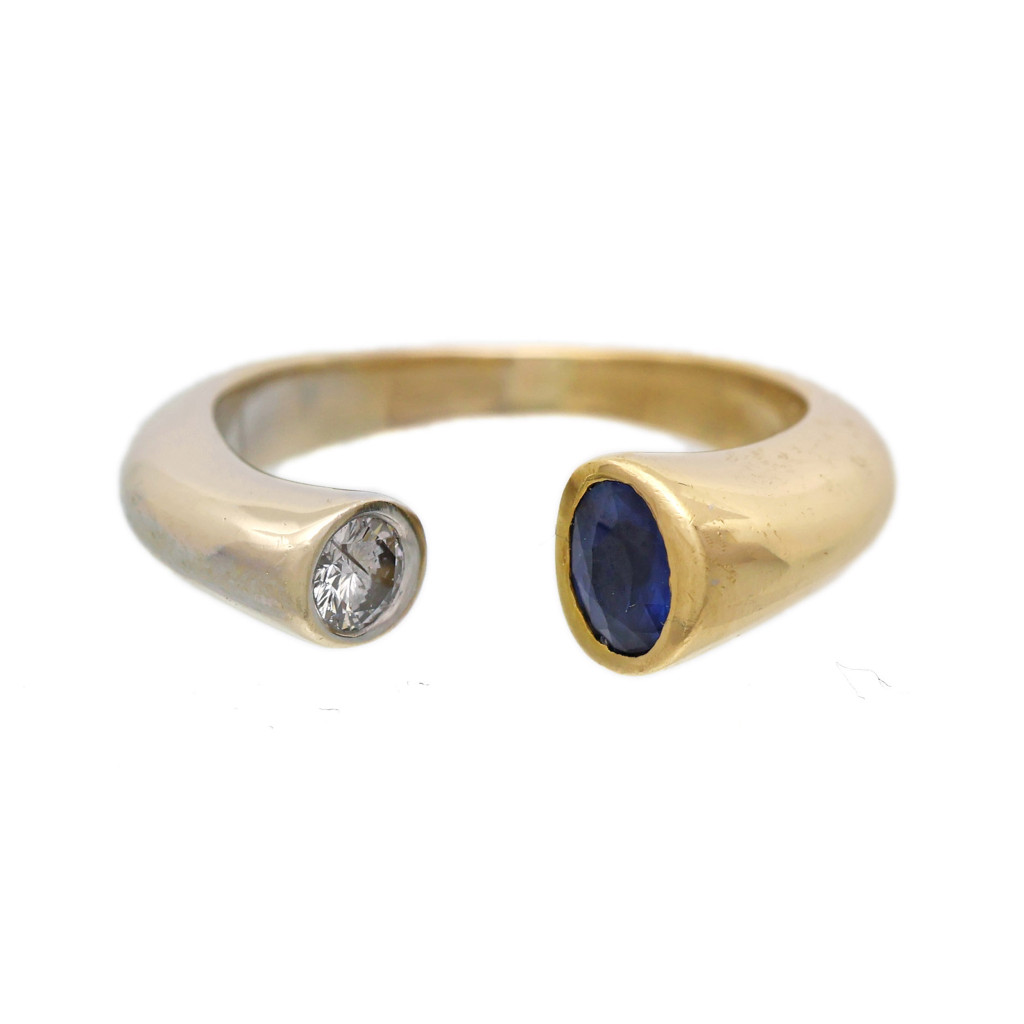 Zlatý prsten se safírem a diamantem